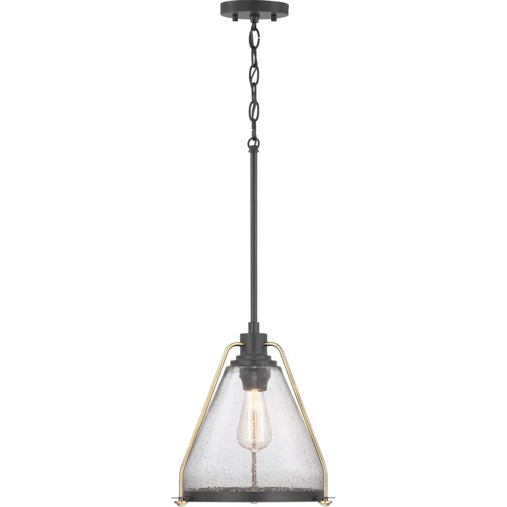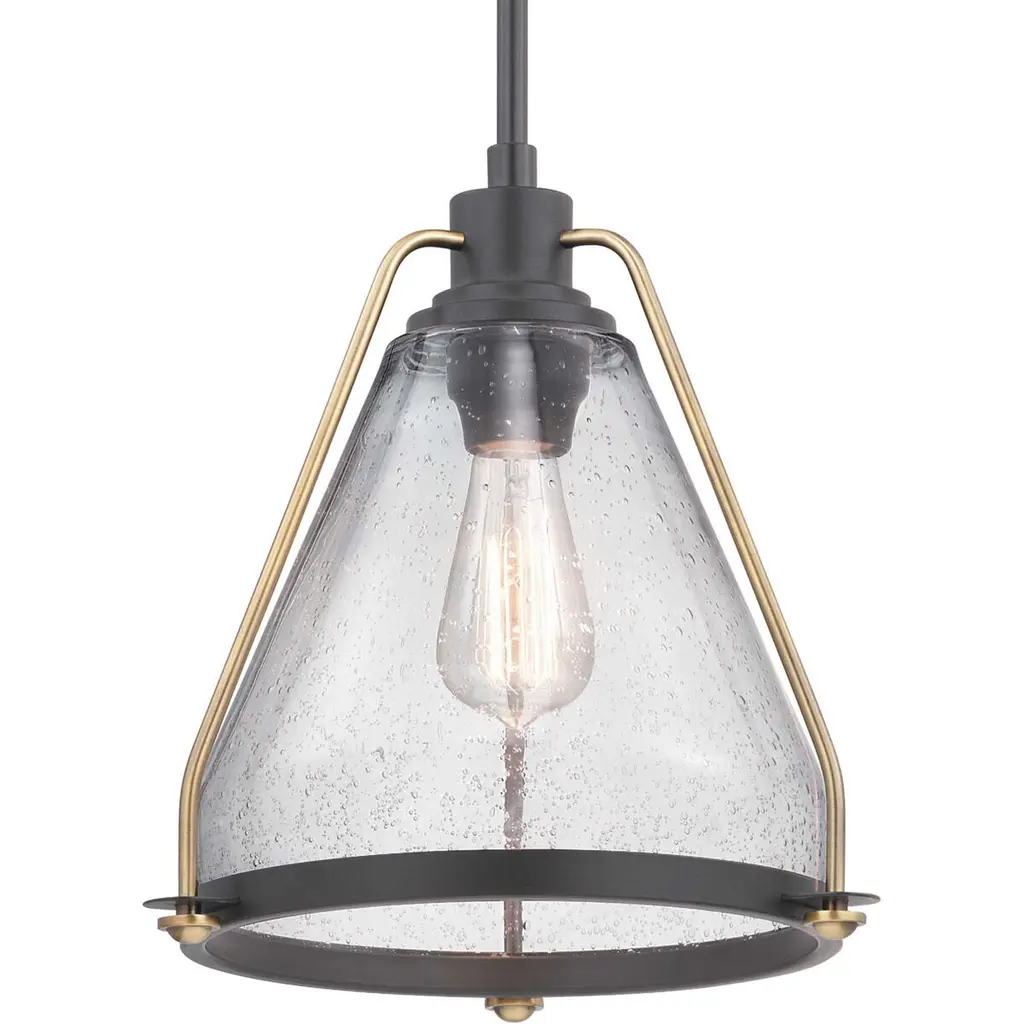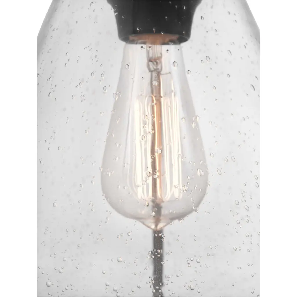 Fano features a classic triangular clear seeded glass shade. The simple geometric glass is outlined with an Antique Bronze slender frame and finished with a bottom metal accent ring. Simple and stylish, this versatile style is suitable for a variety of designs, such as Modern, Farmhouse and Urban Industrial.