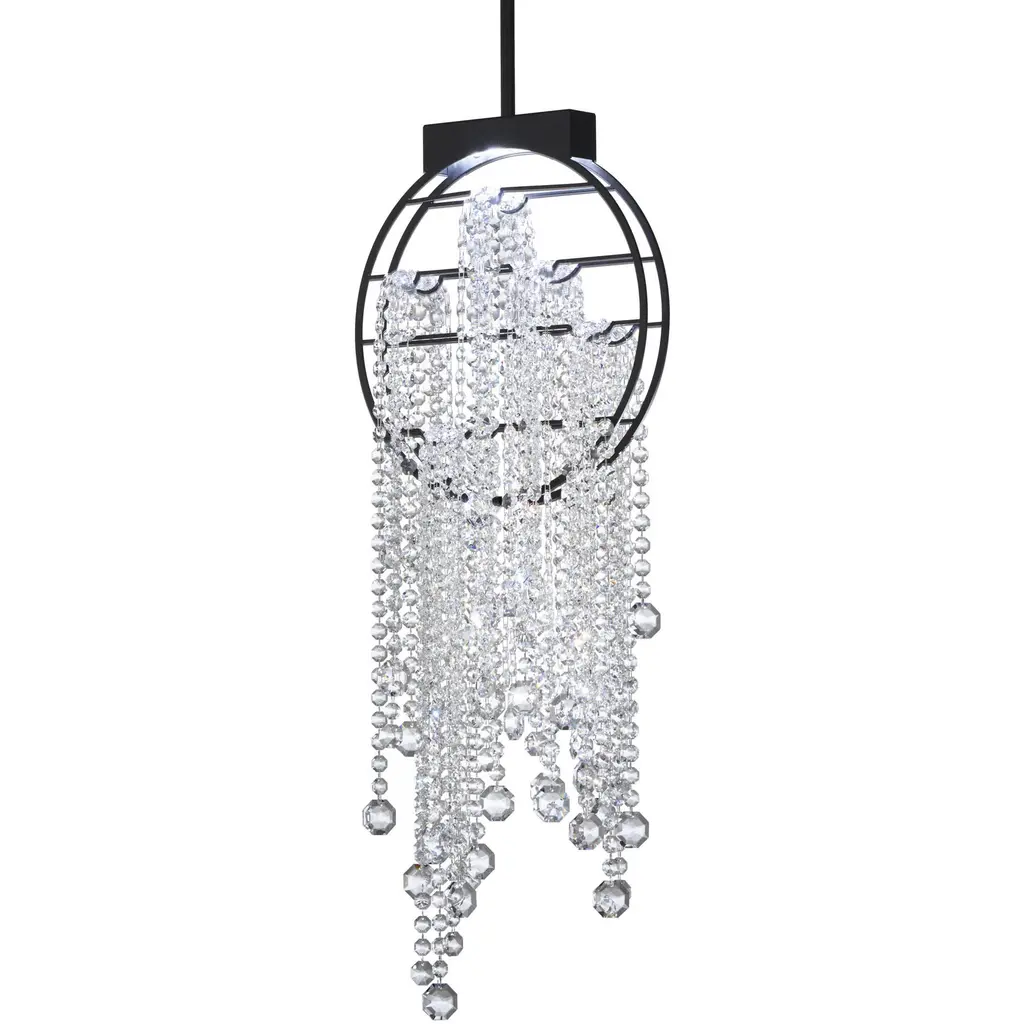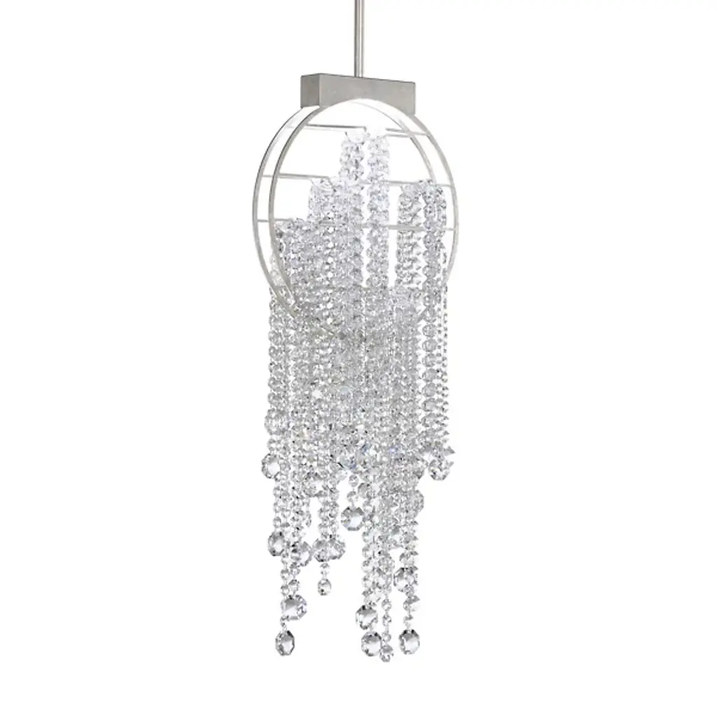 Inspired by the elegance of a bold cuff profile, the Fantasia LED Pendant from Schonbek Forever is decked with cascading ropes of twinkling Schonbek Radiant crystal gems. Crafted in Europe using a state-of-the-art process, the crystals feature double the number of jewel-cut facets compared to traditional crystals. Discreetly illuminated by concealed LEDs, the crystals come to life, creating an attractive display of light and refraction. With its adjustable color temperature, this steel and aluminum luminaire is a rare beauty, designed to be gracefully suspended over surfaces in luxury spaces.