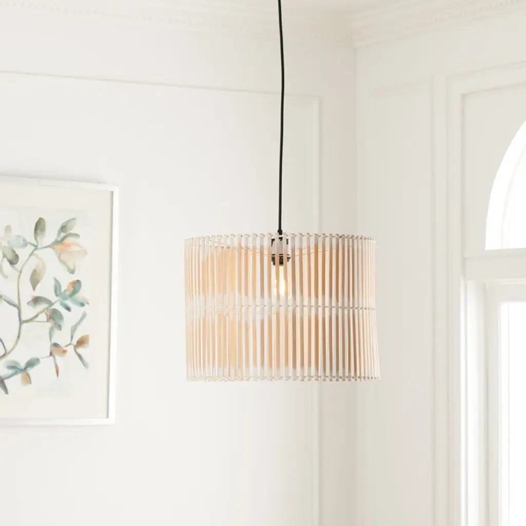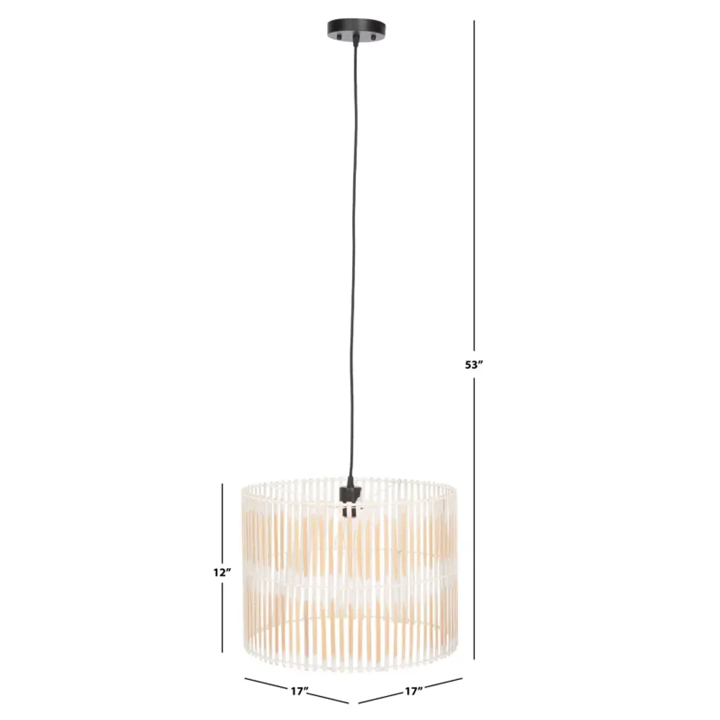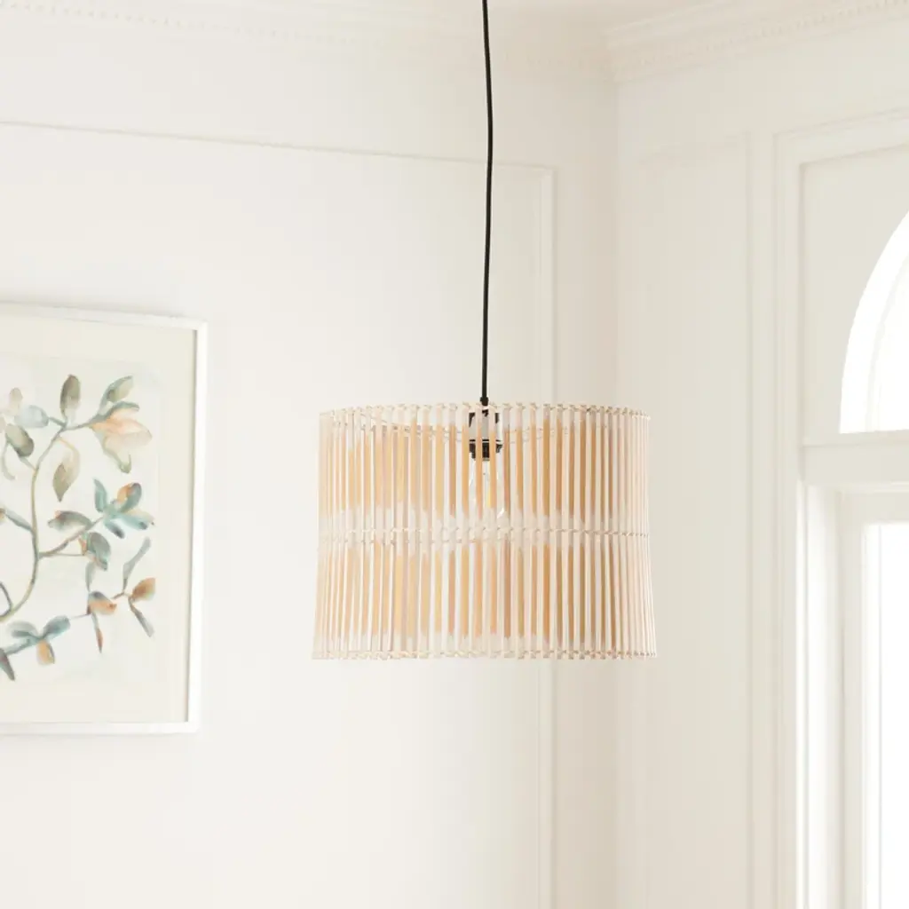 Add a dose of warmth and character to your home with our Traison pendant light. A modern drum shade is upgraded with a light and airy framework. Adorned in a versatile color, our pendant light brings warmth and detail to any corner. Both durable and eco-friendly, the pendant light lends a comforting glow to a reading nook, dining area, living room, or any space that needs a relaxed and breezy touch.