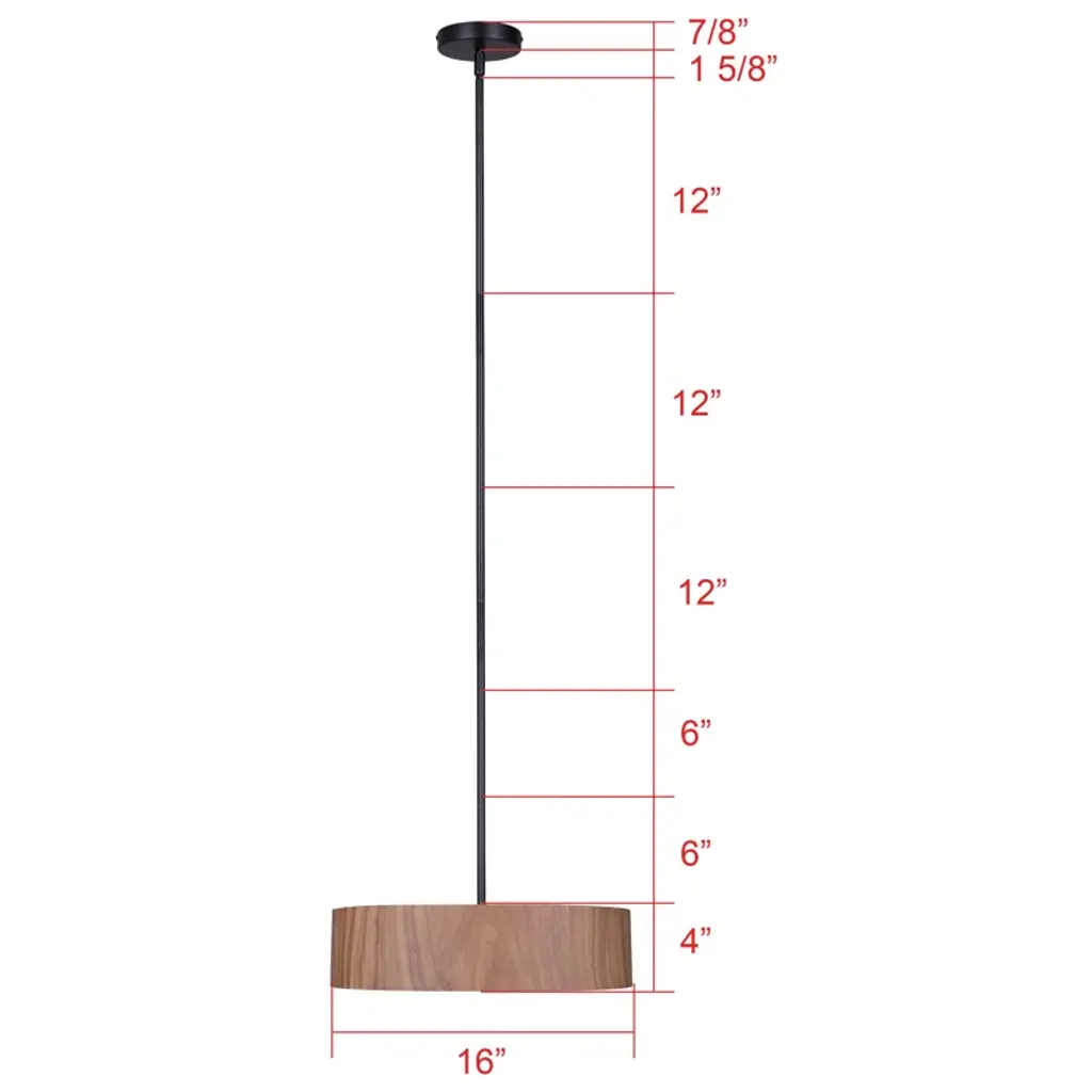 Add a modern and natural aesthetic to your space with the 3-Light rod pendant. This ceiling light features a minimalist faux-wood drum shade and a matte black finish adding modern but rustic charm to your home. Measuring 15.75-inches wide with an adjustable height ranging from 12 to 54.5 inches, easily integrates into multiple decor styles with classical materials and modern design principals. This pendant accommodates three 60W Type A bulbs that shine brightly through its acrylic diffuser, whether placed over a dining table or kitchen island this pendant this ceiling light creates perfect ambiance for any occasion.