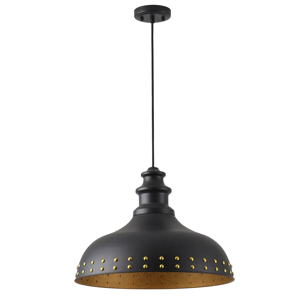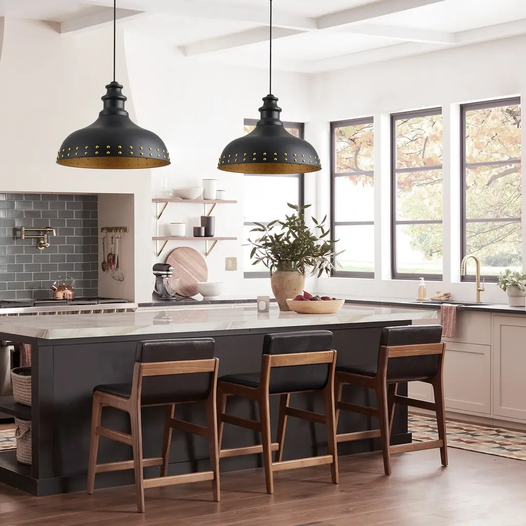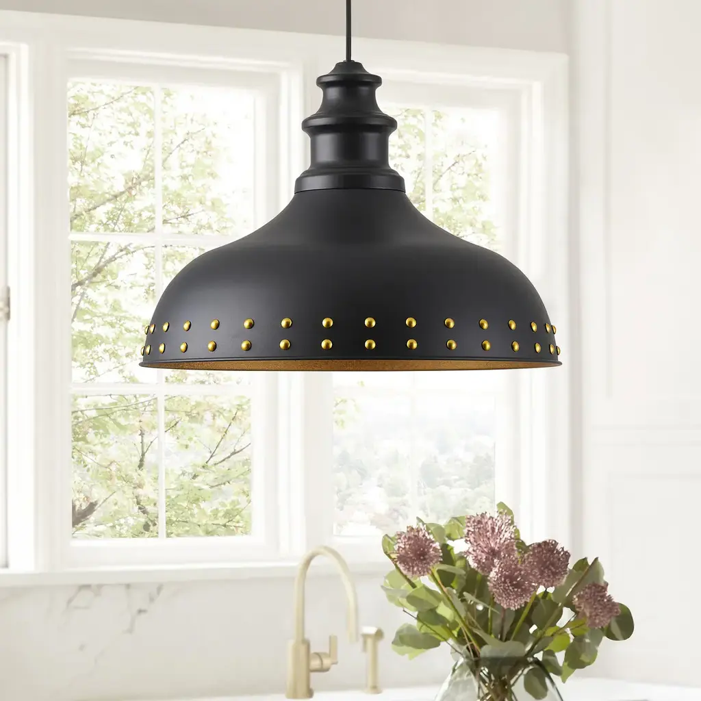 Farmhouse 1-Light Matte Black Metal Pendant Light For Kitchen Island - Black