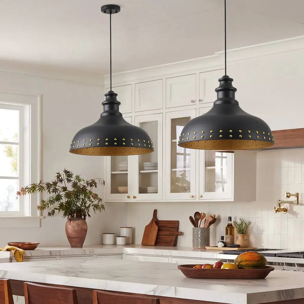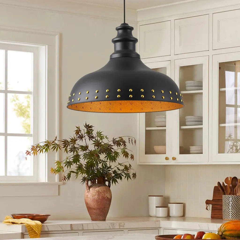 Farmhouse Pendant Light: The dome-shaped pendant light is a combination of industrial and vintage, creates a wonderful new look, and inspires you to create the room of your dreams. Get 2 packs recommended, perfectly fits for kitchen island. Also a great choice for a dining room, bar, kitchen, restaurant, or cafe.Quality Assurance: High-quality iron materials were used to craft the pendant light. All products in the factory have to undergo rigorous safety monitoring, to ensure quality and safety, which is beautiful, corrosion-resistant, and durable for a long time.Easy to Install: All the necessary accessories are included in the package of this dome pendant light fixture, and there are detailed installation instructions to help you ready for quick installation and complete installation in just a few minutes.ETL Listed & Bulb Requirement: ETL Listed for your safety. The pendant light is a built-in standard E26 socket, suggest using the dimmable E26*1 base bulbs (Max 60W, 120V), it could be a fully dimmable and compatible dimmer switch. Bulbs and dimmer switch not included.Home Decoration: This farmhouse pendant light device is not only lighting but also a perfect decoration for a bar, cafe shop, kitchen, restaurant, dining room, living room, porch, entryway, corridor, garage, or other space that needs a rustic or industrial style to your room, offer you a good decorative effect.