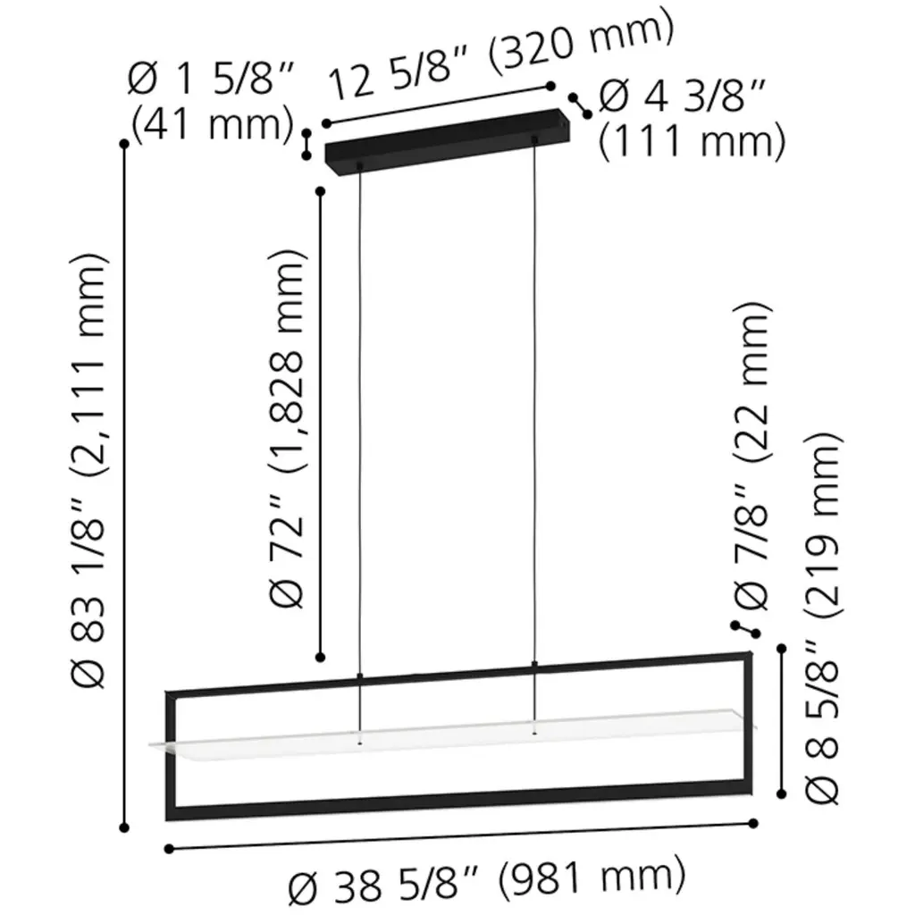 The sleek design of the Farneta Integrated LED Pendant by Eglo features a an open structured black finish frame that surrounds a slim white acrylic shade suspended from black adjustable hanging cables.