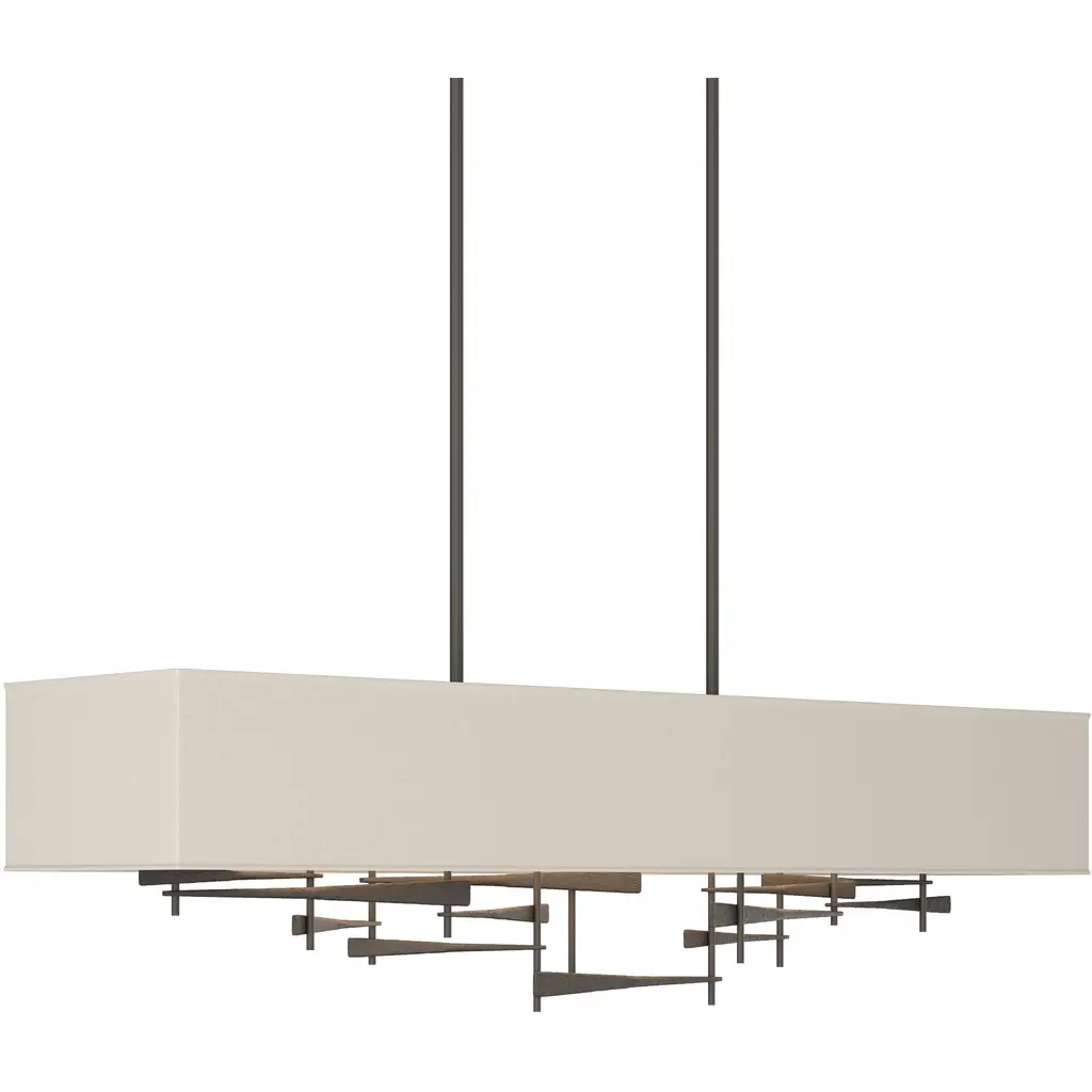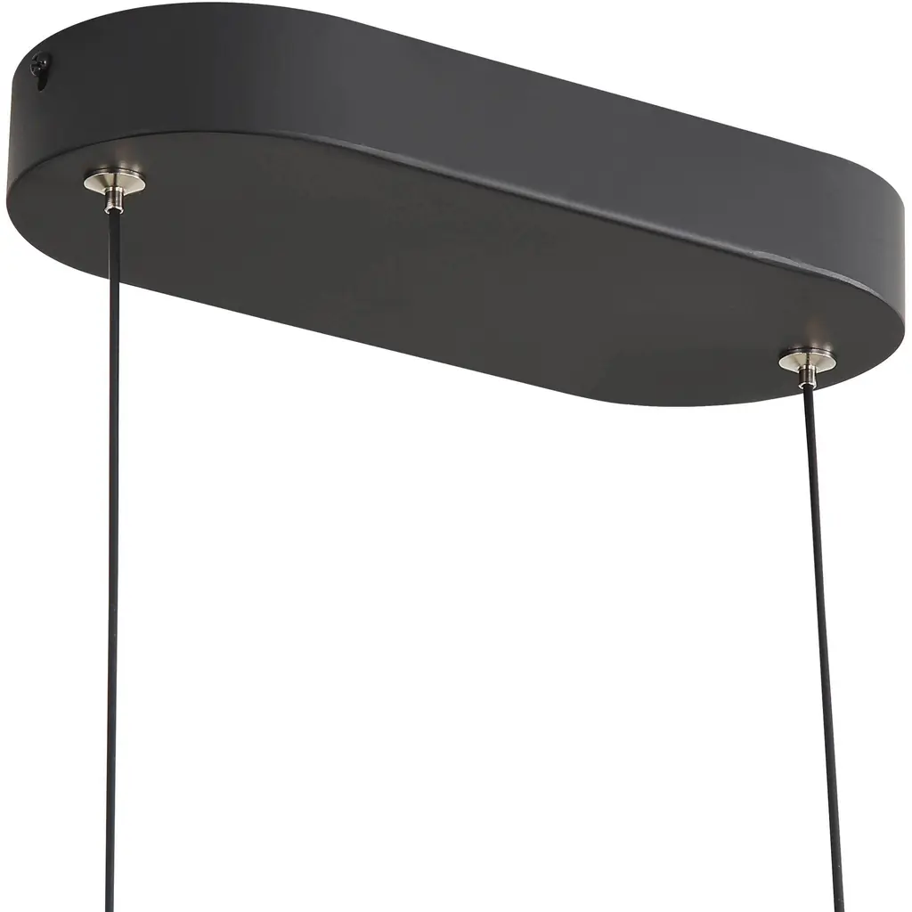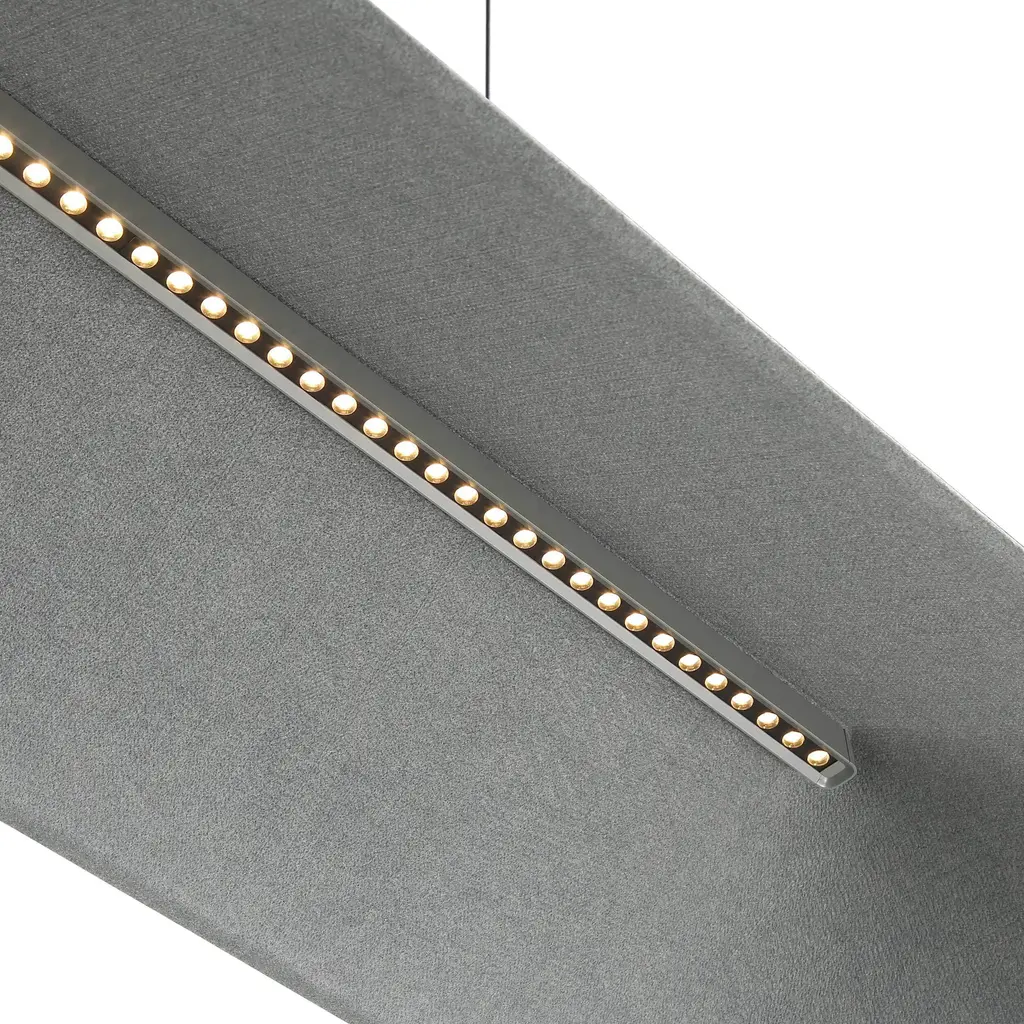 Bring contemporary elegance into your home with the Golden Lighting Faroe Integrated LED Island Light. Featuring a felt shade and a striking Flecked Black/Grey finish, it creates a refined atmosphere. The exterior of black felt with a heathered texture complements a soft gray felt interior, allowing for a neutral, glare-free illumination while enhancing sound-dampening qualities. This piece adds visual depth and tactile warmth to any modern space, designed to enhance your decor with style. Ideal for dry locations, it fits perfectly in kitchens and dining areas. It's sloped-ceiling compatible and features an adjustable height from 7.375" to 127.375". With overall dimensions of 43"W x 6"H x 15.75"D, this integrated LED light provides brilliant illumination at 1080 rated lumens, with a warm 3000K CCT. Upgrade your home with Golden Lighting's commitment to quality and eco-friendly sophistication.