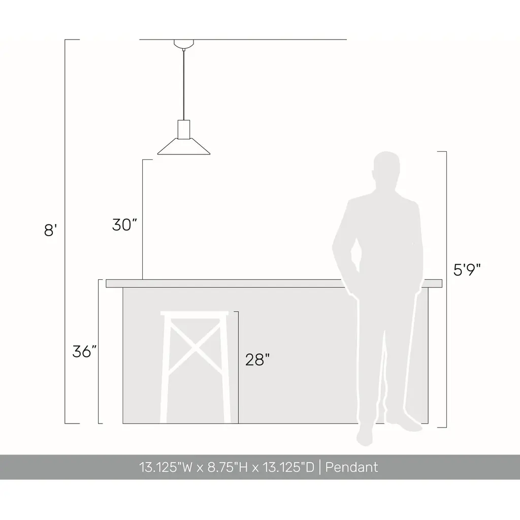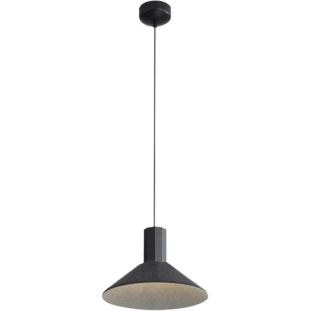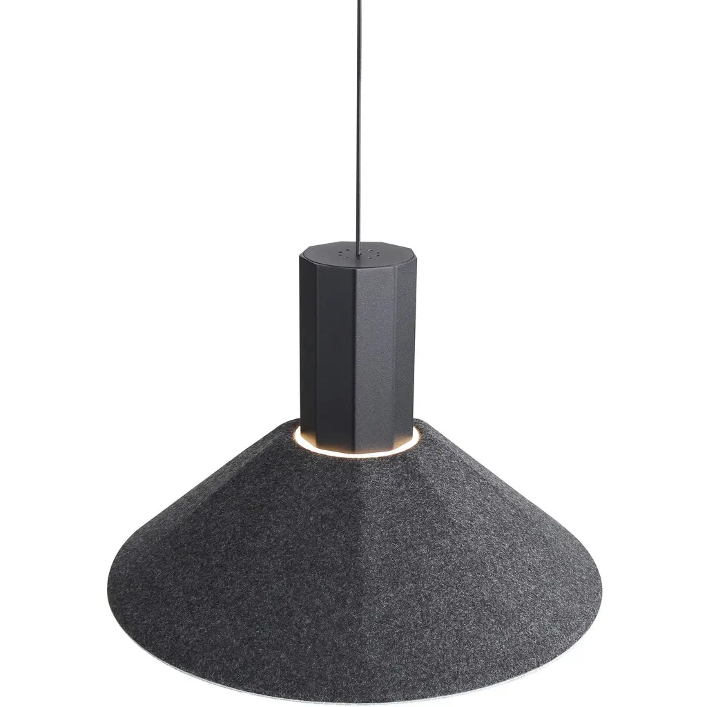 Bring modern elegance into your home with the Golden Lighting Faroe 13in Integrated LED Pendant. Featuring a felt shade and a matte black frame, it creates a welcoming atmosphere. The dual-toned felt shade has a flecked black exterior and a gray interior, offering a neutral, glare-free light while enhancing sound-dampening qualities. The epitome of clean, modern style, the matte black finish complements a variety of decors. Ideal for indoor spaces not subject to moisture, such as bedrooms and living rooms, this pendant is sloped-ceiling compatible and has an adjustable height from 10.875" to 130.875". Overall dimensions are 13.13"W x 8.75"H x 13.13"D, with integrated LED technology providing 710 rated lumens and a warm glow at 3000K. Enhance your interiors with this chic and functional pendant light.