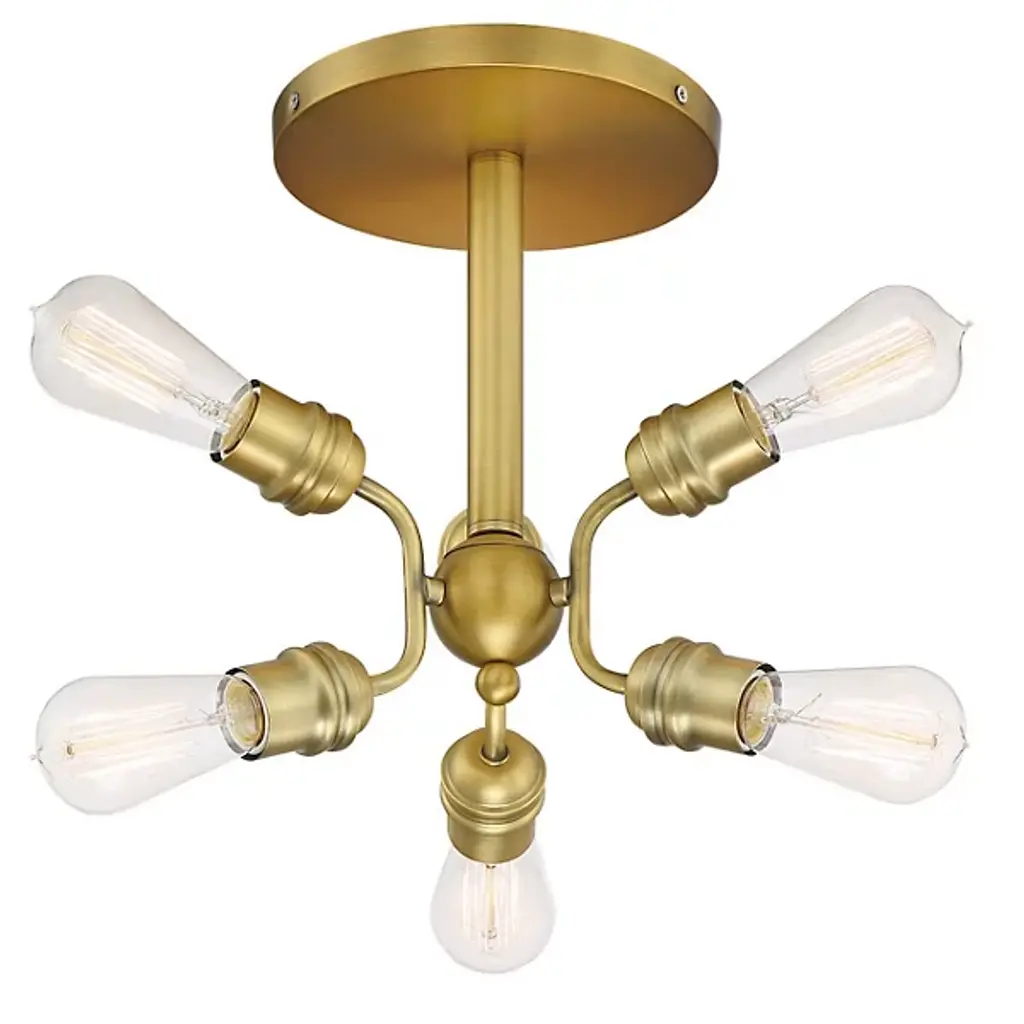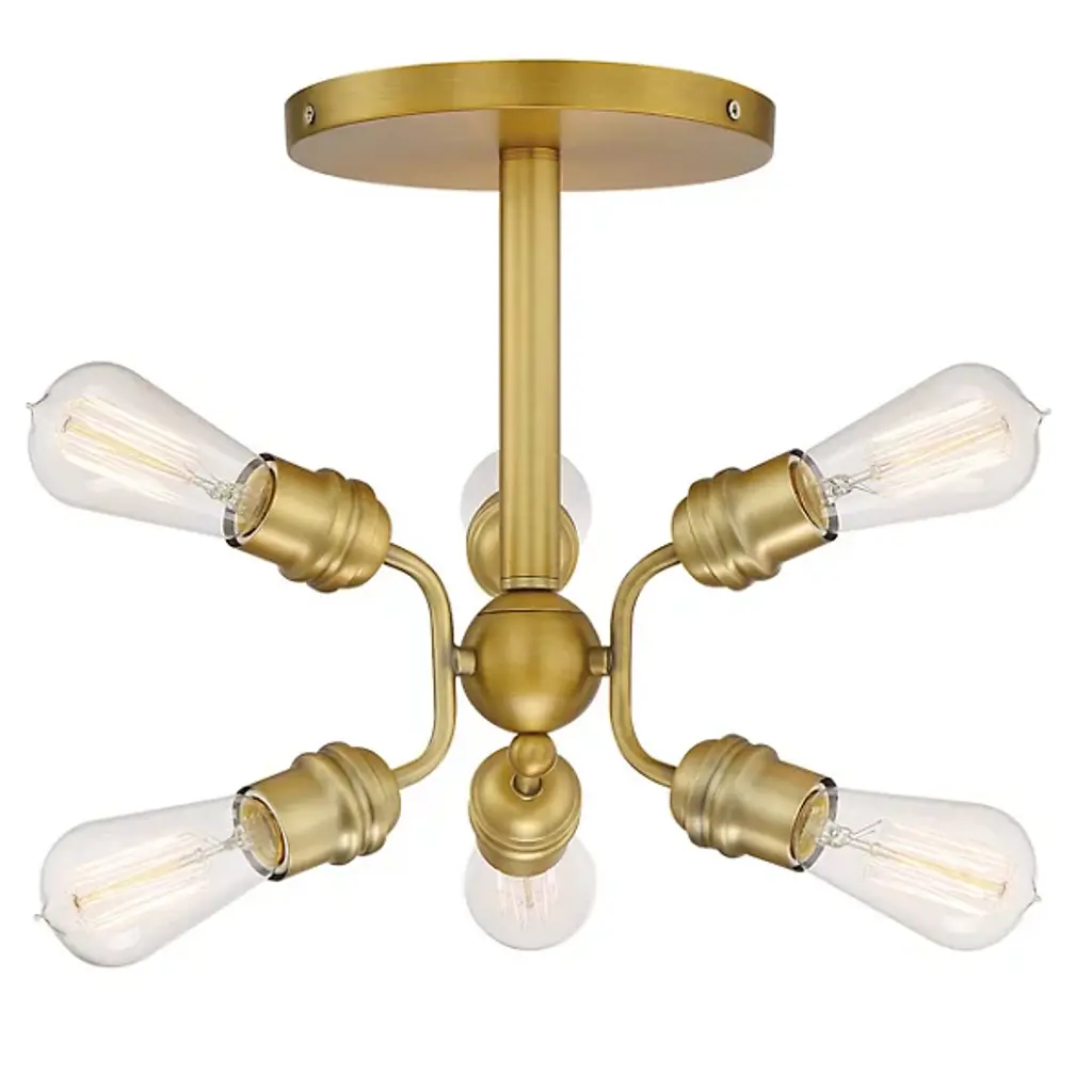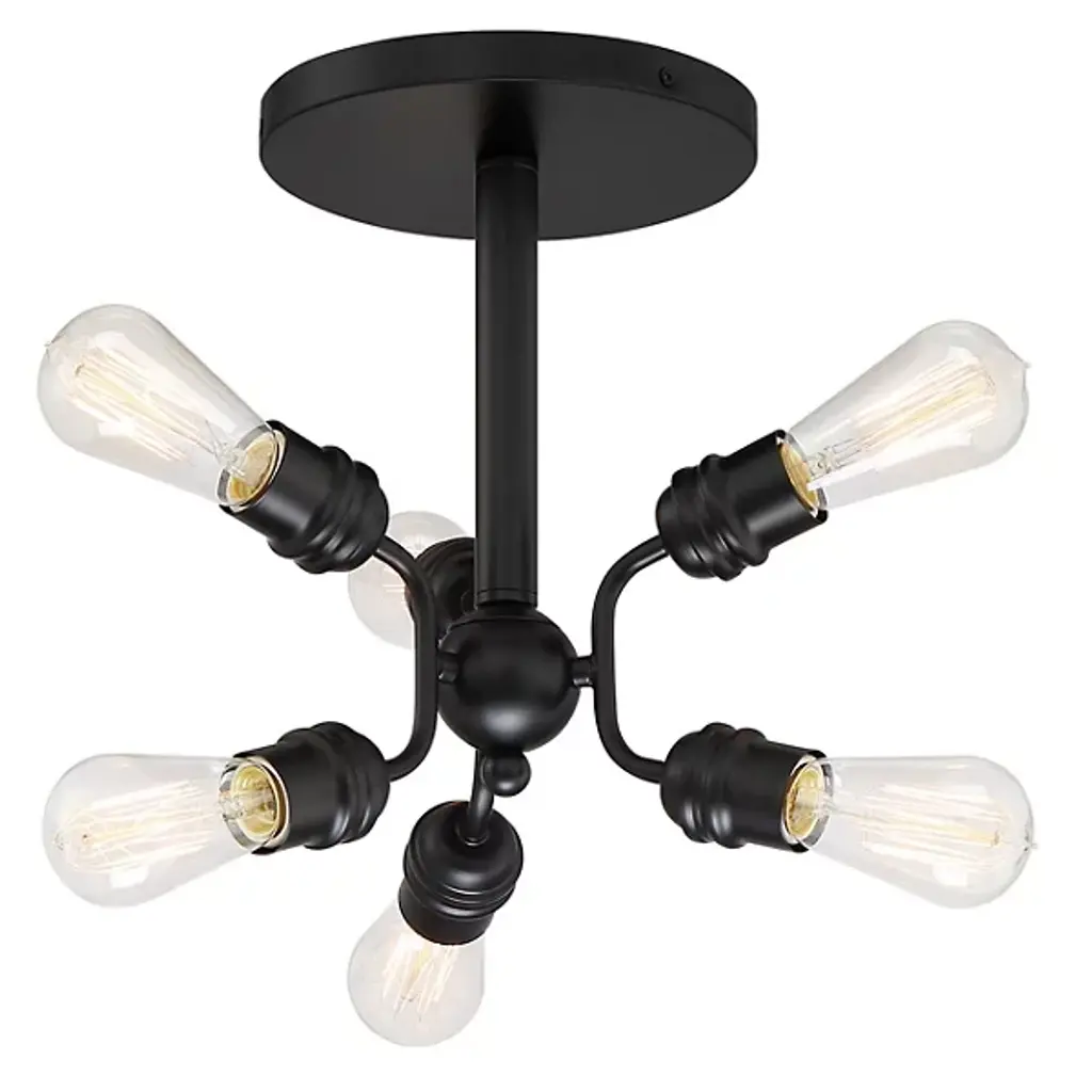 The Farrah Semi-Flushmount by Alder & Ore is a handsome addition to spaces with a little modern flair. Nestled close to the ceiling, a short stem supports a spherical center that an array of exposed bulbs extends from, mimicking the structure of a cool, sputnik-style fixture. Offering plenty of illumination to surroundings, this dynamic design is dressed up with a beautiful finish to lend a stylish, bright touch to the rooms it is in.