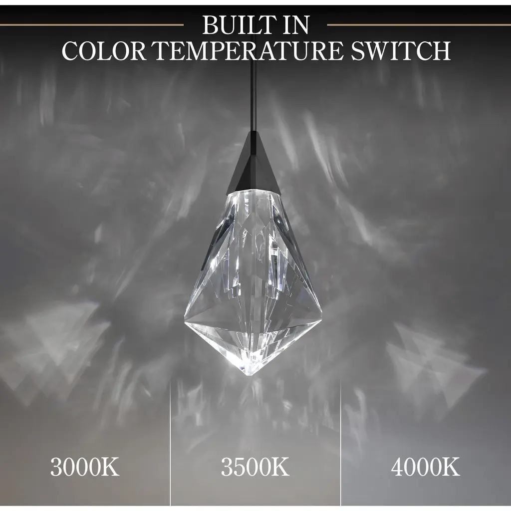 Filled with the light of imagination, faceted Optic Clear crystal presents a multi-layered depth. LED illumination creates infinite sparkling reflections from this jewel-like pendant with a glittering crystal canopy. Schonbek Beyond LED luminaires feature a 3-CCT color temperature selectable switch that can be accessed at the time of installation to toggle between 3000K-3500K-4000K color temperatures. 10ft of wire included with three 12in and one 6in downrods (additional downrods sold separately). Canopy includes hang straight swivel for slope ceilings.