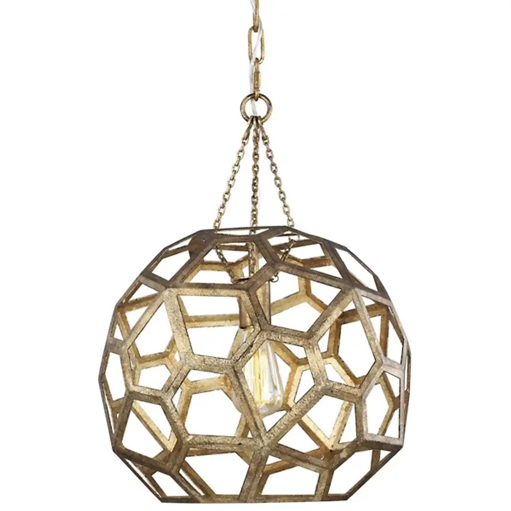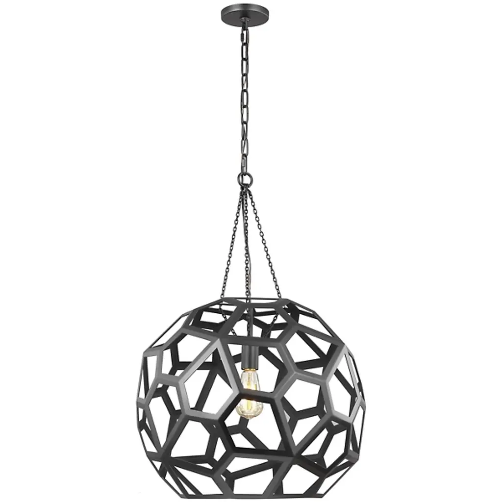 Impressing equally during the day than at night. Facets of fascination surround the animated, sculptural display of the Fecetta Pendant from Visual Comfort Studio, formerly known as Kelly by Kelly Wearstler, This fusion of art and design factors perfectly in the contemporary home aesthetic. It hangs with a slender chain-link suspension, making it a great choice as part of a pair over a table. Crafted from steel, the dome shade produces open facets that give the light its airy ambient feel. Light focuses the shade’s graphic silhouette, thus revealing the elegant diamond shape of the facets.