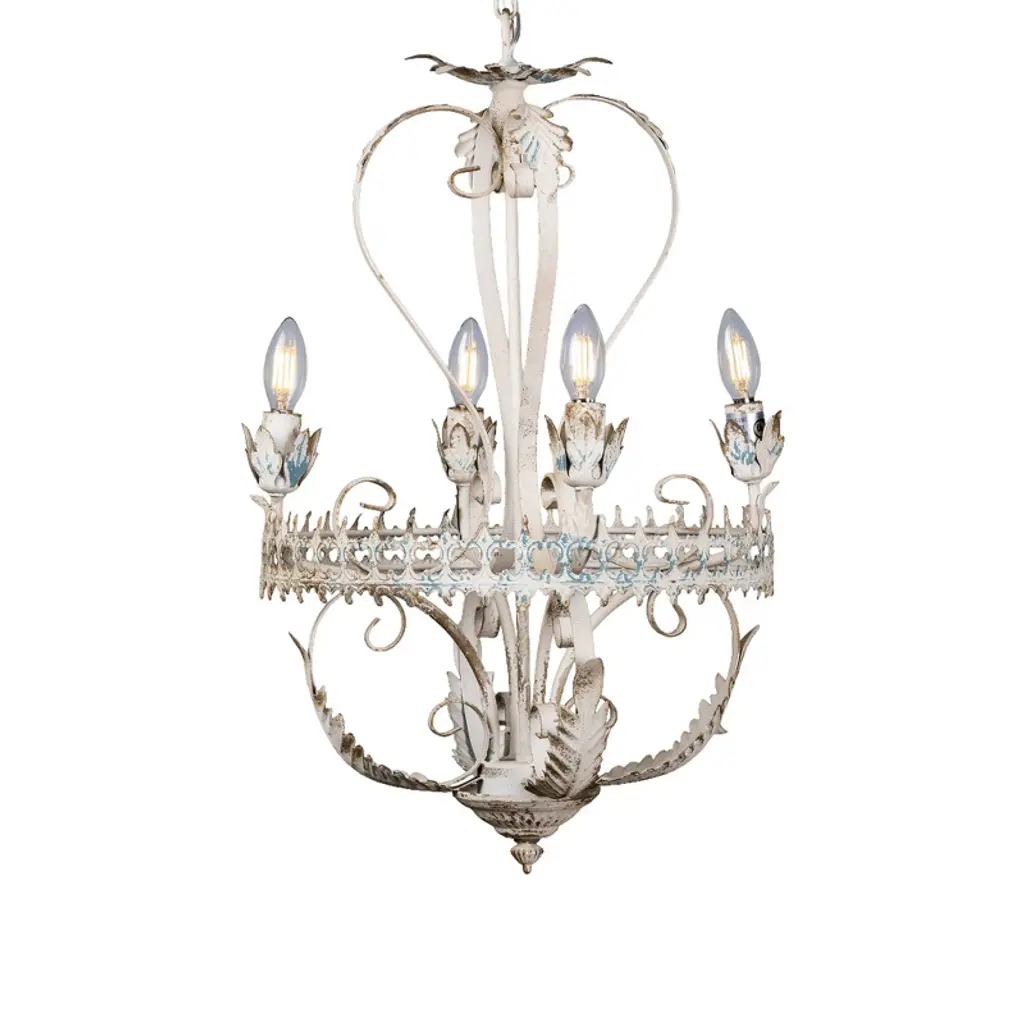 The Sanremo line is decidedly nostalgic, evoking the past, when the lighting of the rooms was given by the goose light of candles. Antique painted brass and manual floral decorations make each lamp a jewel.Light source: 5 x max 42W E14Metal finish: WhiteDecoration: 38. DEC. SOB - Blue wireThe decoration does not correspond to the one shown in the photo. See the second image of the gallery.