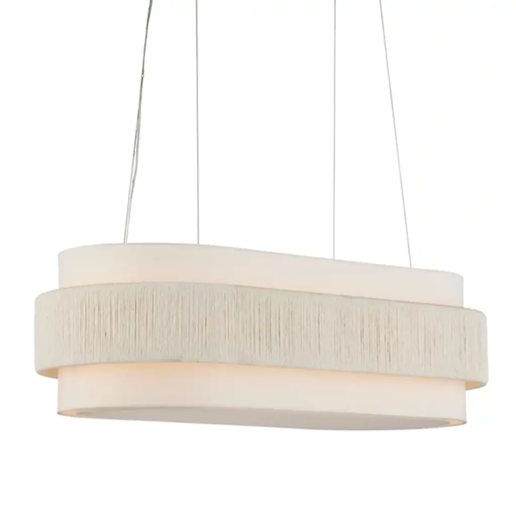 A tropical take on a traditional three-tiered chandelier, this easy, casual look is created from cotton rope. The pendant is artisan crafted and easily integrated into a plethora of modern décor styles. Its smaller size makes it a wonderful choice for breakfast nooks, or try several over a large kitchen island.