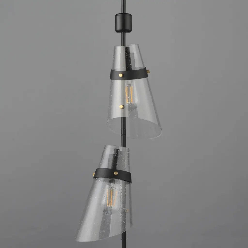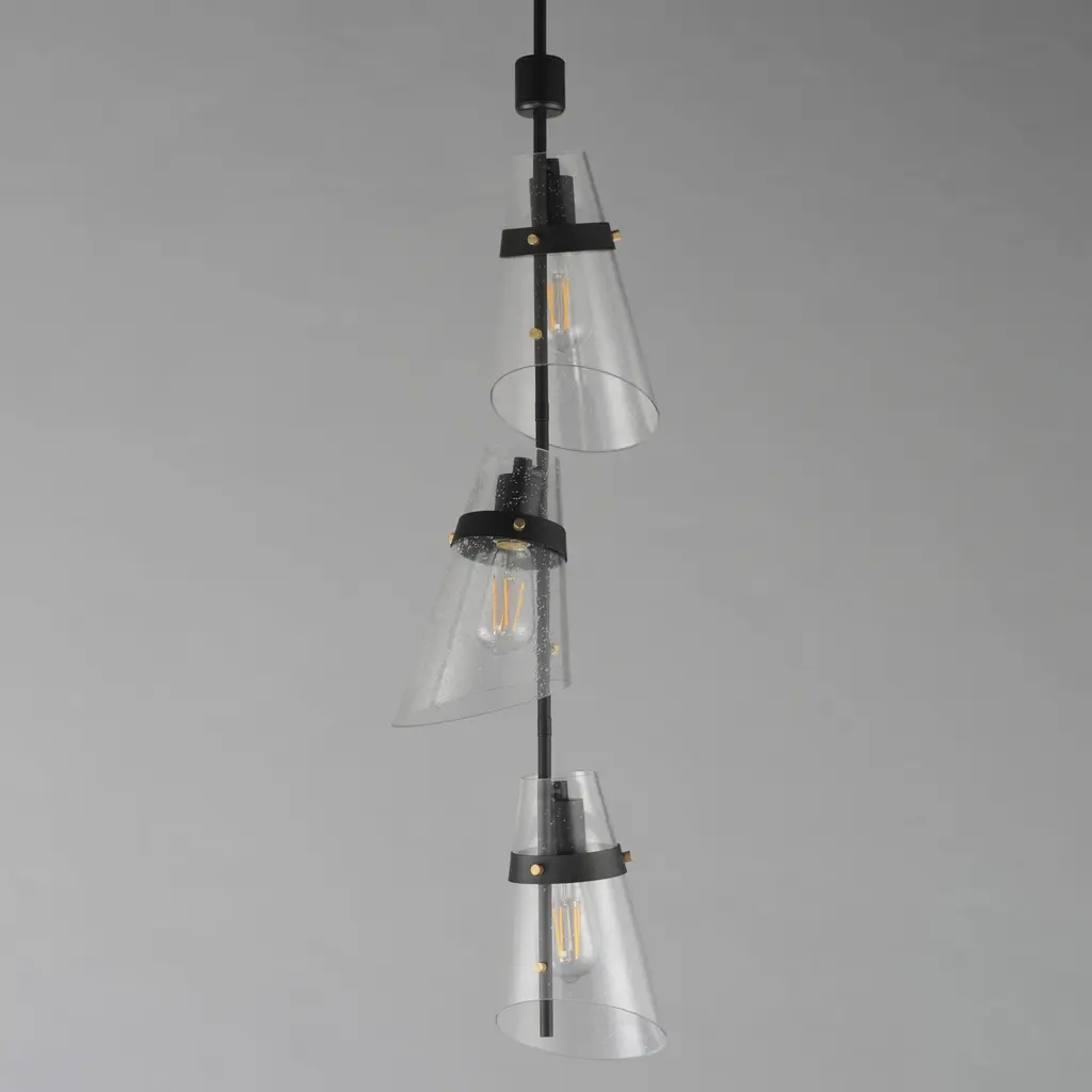 Architectural and effortlessly striking, the Finch collection reimagines classic forms through a modern lens. Tapered cones of clear seedy glass are precision-cut on a diagonal slant, creating dynamic lines that shift with perspective. The Dark Bronze framework is accented with subtle Antique Brass fasteners, grounding the design with a warm, tailored contrast. Whether styled as a wall sconce, linear pendant, or cascading drop fixture, Finch brings visual movement and sculptural presence to transitional and contemporary spaces alike.