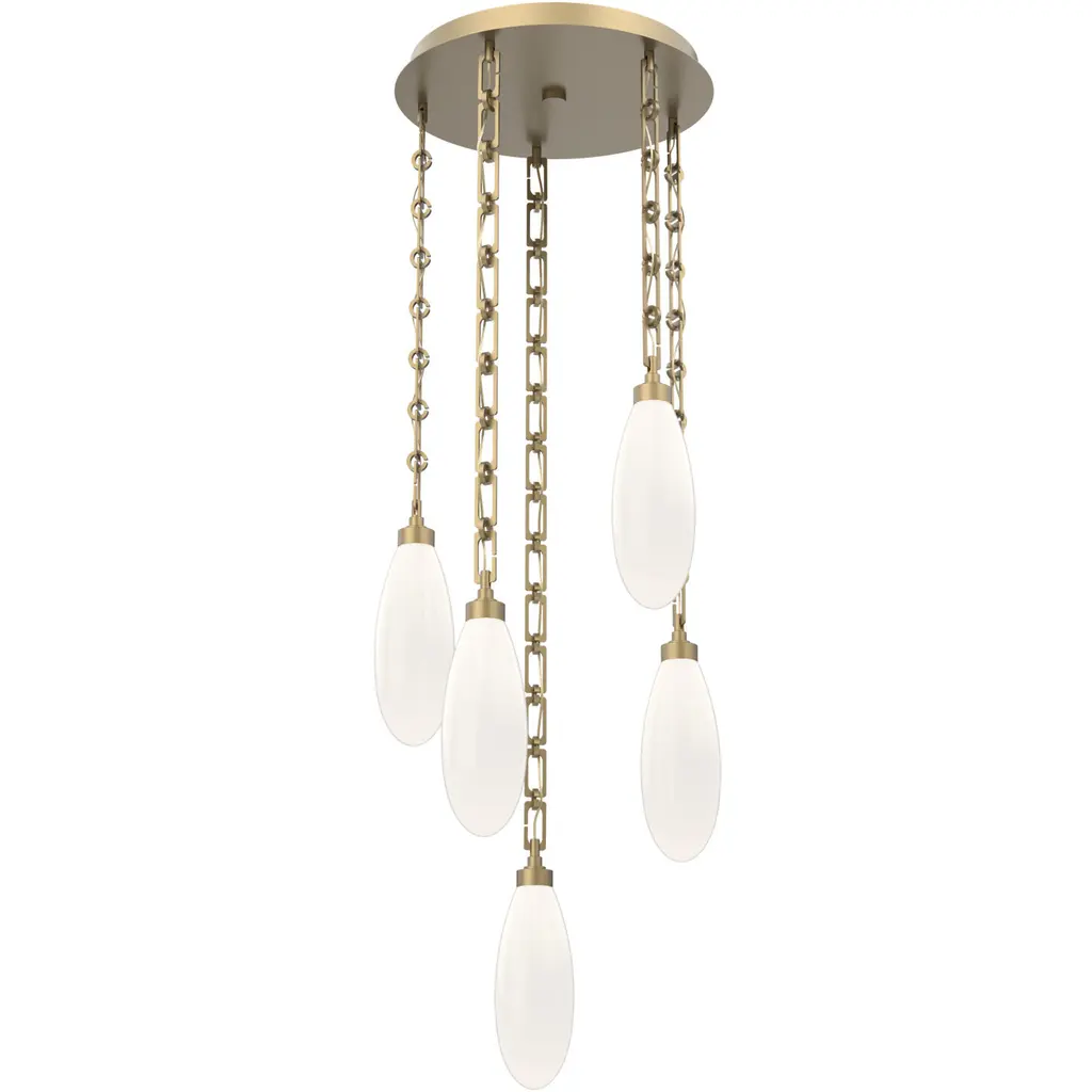 Lustrous white buds of LED-lit artisan blown glass offer a playful reinterpretation of mid-century style in this multi-pendant design featuring 5 Fiori pendants suspended from a single round canopy. Suspension options include cloth-braided cord or handcrafted chain in three vintage-inspired styles.