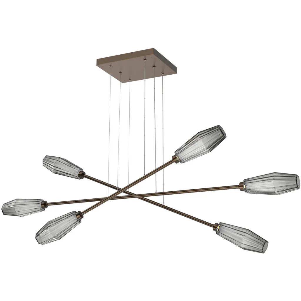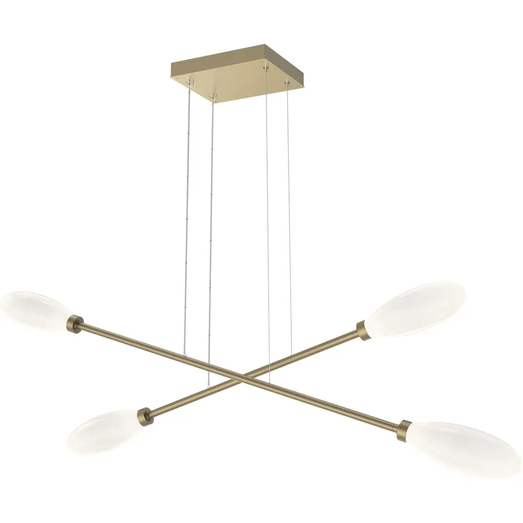 Fiori Led Gilded Brass Linear Multi-Pendant Ceiling Light, Triple Moda
