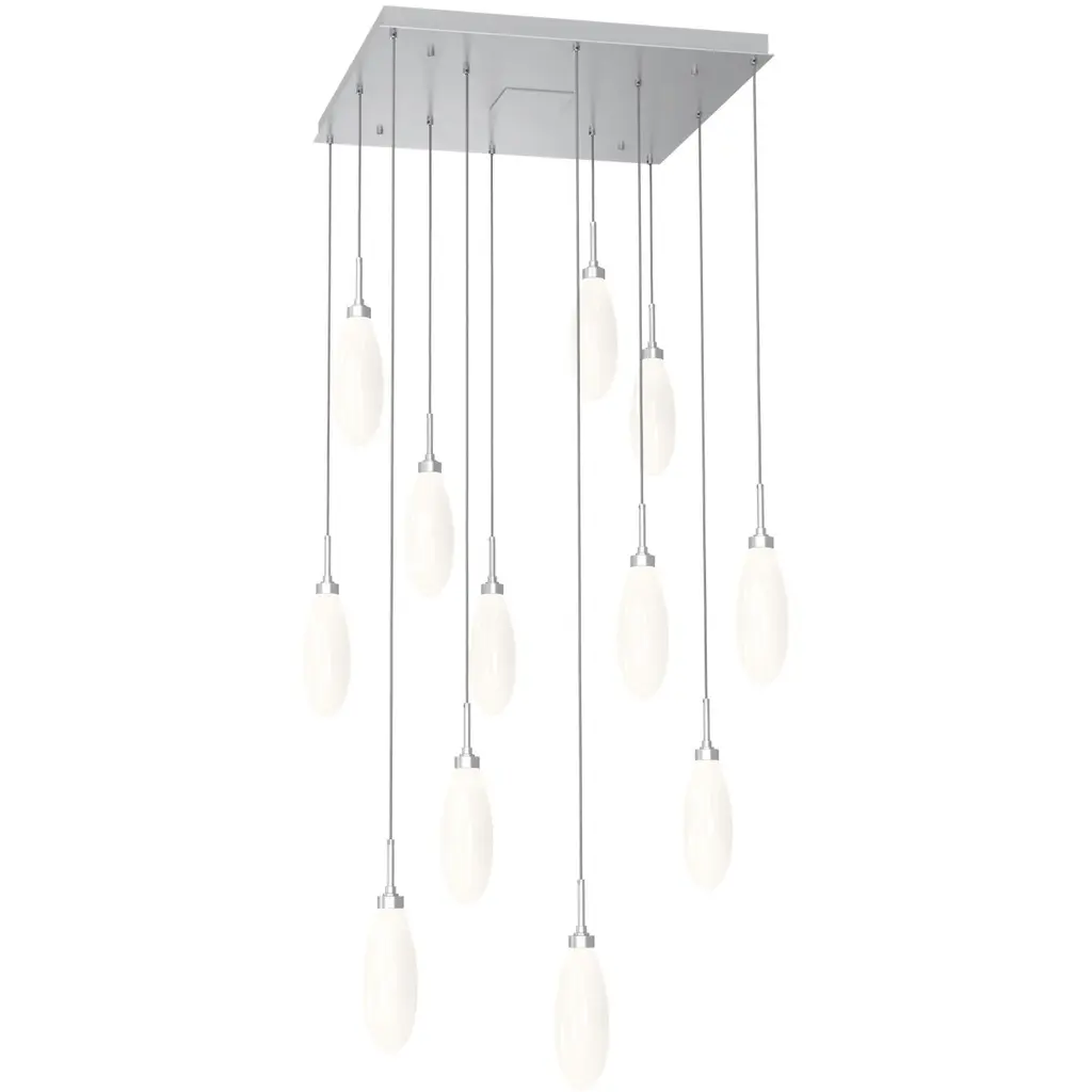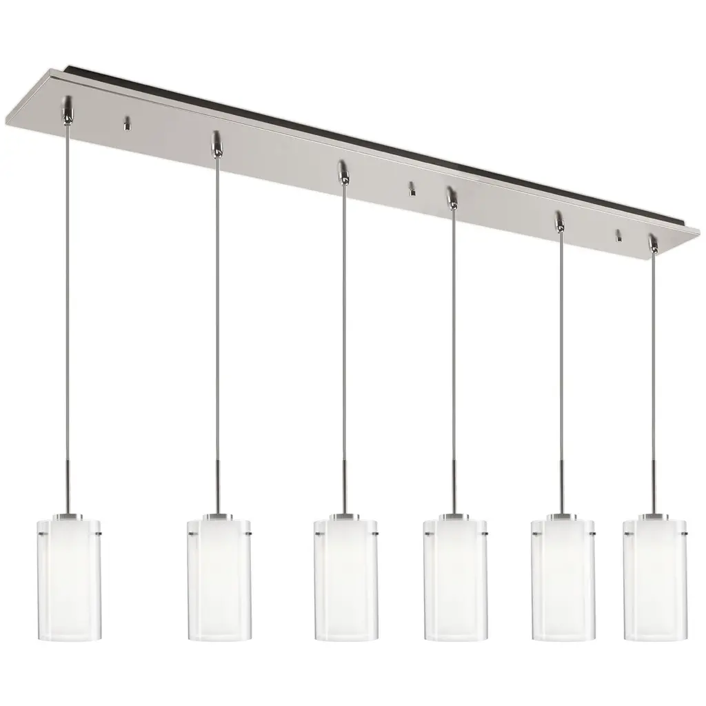 Fiori Linear Multi-Port 07 Pc.-Metallic Beige Silver-White Glass Lens-Silver Cloth Braided Cord-LED