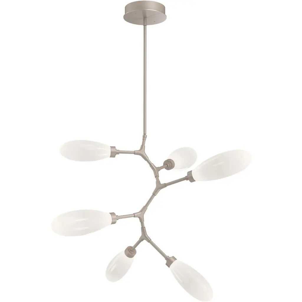 Fiori Modern Branch 6 Pc.-Novel Brass-White Glass Lens-Threaded Rod Suspension-LED