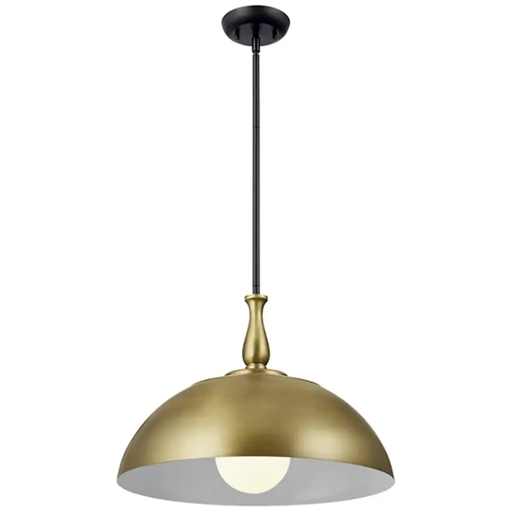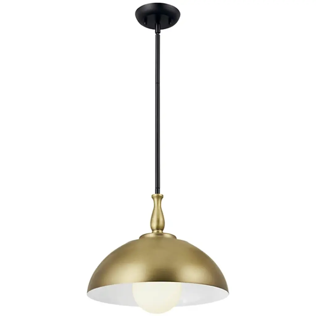 Delight in the fine metalwork of the Fira Pendant by Kichler. Durable steel has been meticulously worked into the shape of a dome. This dome is crowned by a petite, vase-shaped embellishment that accentuates the pendant’s transitional appearance. Inside of the metallic dome sits an incandescent bulb formed in the shape of a globe. Brilliant light splays from overhead, enhancing the visibility of your living space. The Fira Pendant is safely secured by a downrod attached to a ceiling canopy.
