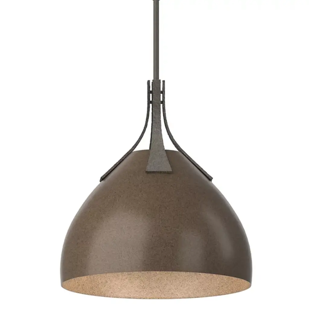 Delight in the fine metalwork of the Fira Pendant by Kichler. Durable steel has been meticulously worked into the shape of a dome. This dome is crowned by a petite, vase-shaped embellishment that accentuates the pendant’s transitional appearance. Inside of the metallic dome sits an incandescent bulb formed in the shape of a globe. Brilliant light splays from overhead, enhancing the visibility of your living space. The Fira Pendant is safely secured by a downrod attached to a ceiling canopy.