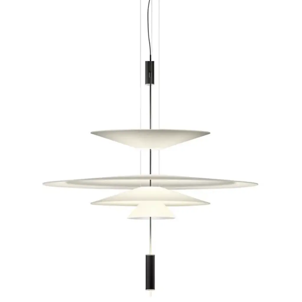 The Flamingo 1550 LED Pendant from Vibia brings an expressive quality to your home décor. Flamingo is designed by Antoni Arola, who crafts this fixture in the Spanish tradition. This contemporary piece epitomizes elegance and is recognized by its sand-blasted polycarbonate shades. Secured by a durable, round ceiling canopy, these shades are arranged in a descending fashion, each with distinctive, tapering outlines. The Flamingo is illuminated by a brilliant, integrated LED.