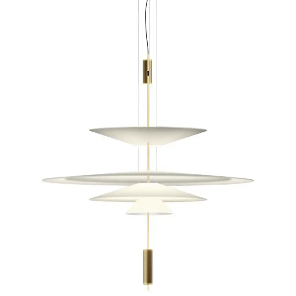 The Flamingo 1550 LED Pendant from Vibia brings an expressive quality to your home décor. Flamingo is designed by Antoni Arola, who crafts this fixture in the Spanish tradition. This contemporary piece epitomizes elegance and is recognized by its sand-blasted polycarbonate shades. Secured by a durable, round ceiling canopy, these shades are arranged in a descending fashion, each with distinctive, tapering outlines. The Flamingo is illuminated by a brilliant, integrated LED.