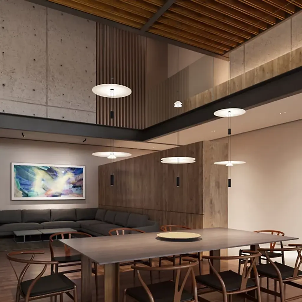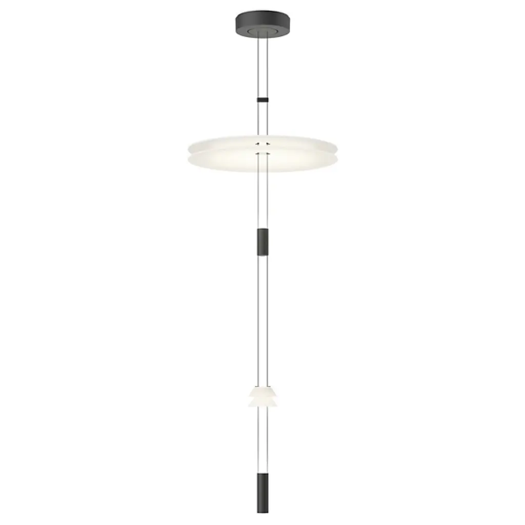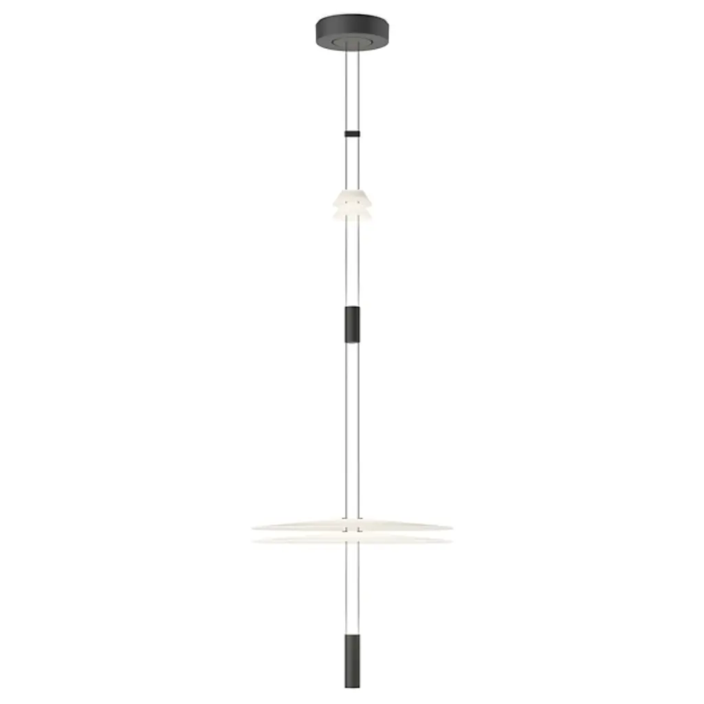 The Flamingo Mini 1590 LED Pendant from Vibia brings a refined, airy presence to interiors with its elegantly elongated form. Designed by Antoni Arola and made in Spain, this pendant features two large upper dish shades and two smaller flared lower shades, suspended by slender cables that support the LED light source. By separating the energy-efficient LEDs from the delicate shades, the design creates a floating effect reminiscent of a bird in flight. The LEDs function as spotlights, casting soft, ambient illumination upward and downward for a striking column of light.