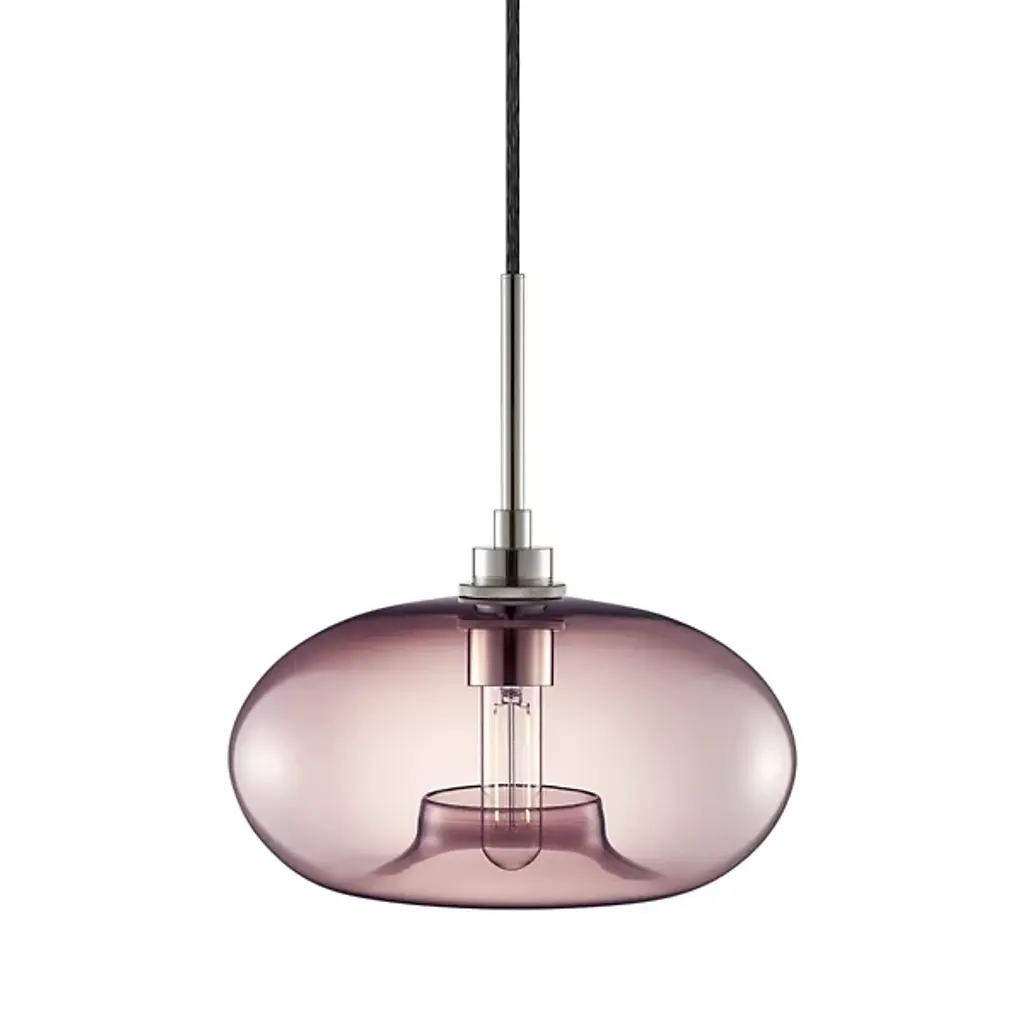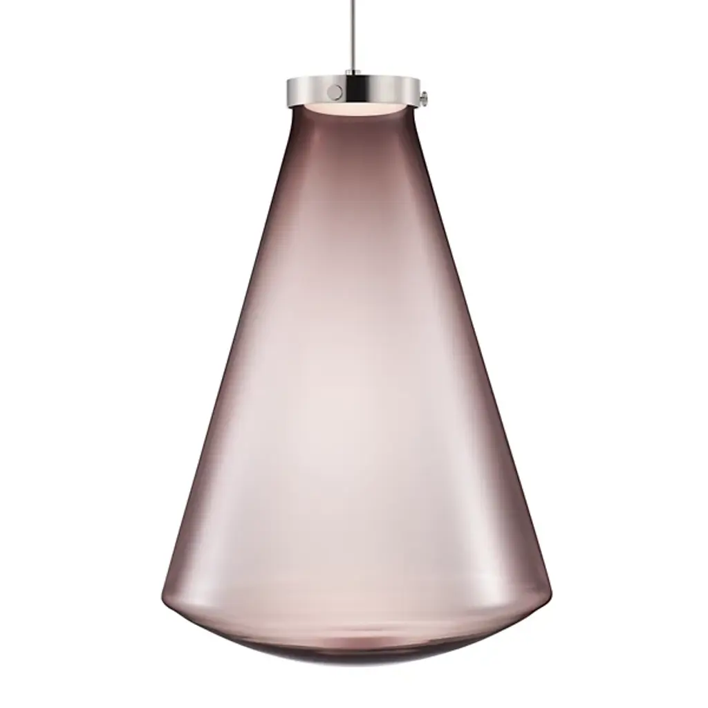 Present lasting artisanal appeal to interior ceilings with the Flask Petite LED Pendant from Niche. An artful expression of dainty construction and fulsome functionality, it’s designed by Jeremy Pyles and supported from the ceiling by a strand of slender, strong, low-voltage coaxial cable that ends in a disc-shaped collar and housing of sleek metal that holds LED lamping within. The shade of handcrafted glass flares out below the lamping, its rounded base offering a sculptural accent while moderating the direct glare below into an even, appealing warmth.
