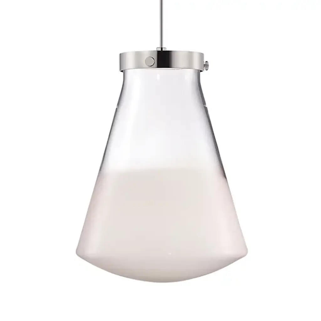 Present lasting artisanal appeal to interior ceilings with the Flask Petite LED Pendant from Niche. An artful expression of dainty construction and fulsome functionality, it’s designed by Jeremy Pyles and supported from the ceiling by a strand of slender, strong, low-voltage coaxial cable that ends in a disc-shaped collar and housing of sleek metal that holds LED lamping within. The shade of handcrafted glass flares out below the lamping, its rounded base offering a sculptural accent while moderating the direct glare below into an even, appealing warmth.