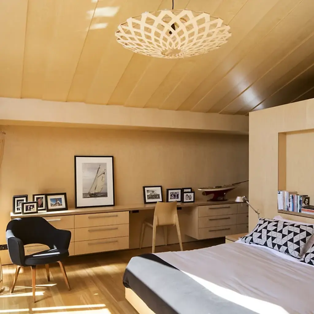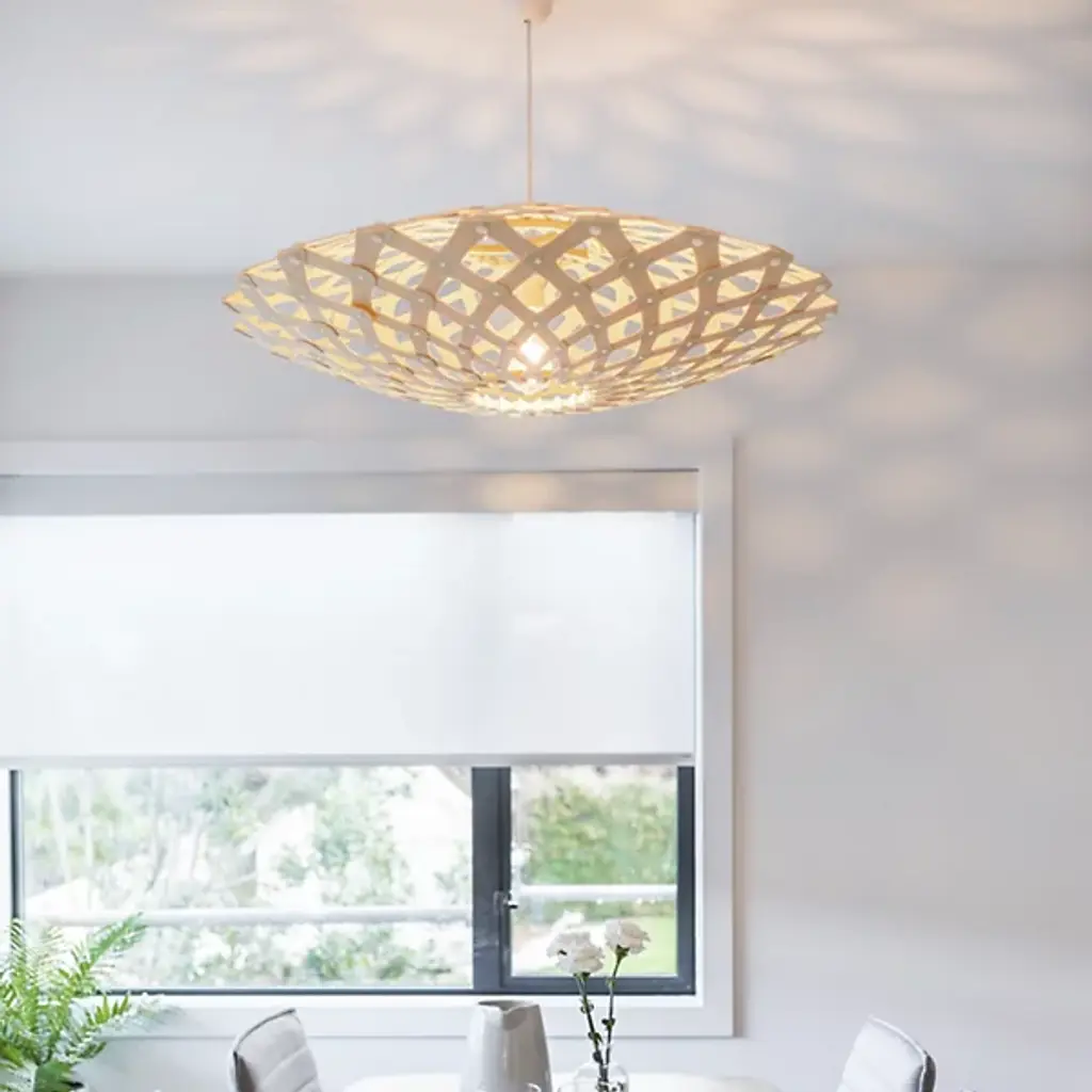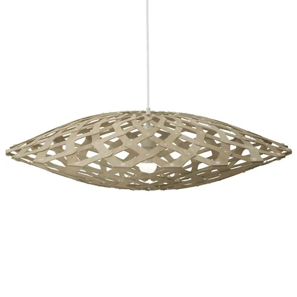 Taking its name from the New Zealand indigenous plant, the David Trubridge Flax Pendant instead reflects a silhouette that looks to the sea more than land. Featuring clam-like contours, the natural wood composition, open latticed structure, and expressive interior color options adhere to the favored schematics found in many Trubridge designs. Ships flat-packed in a Seed System kitset.