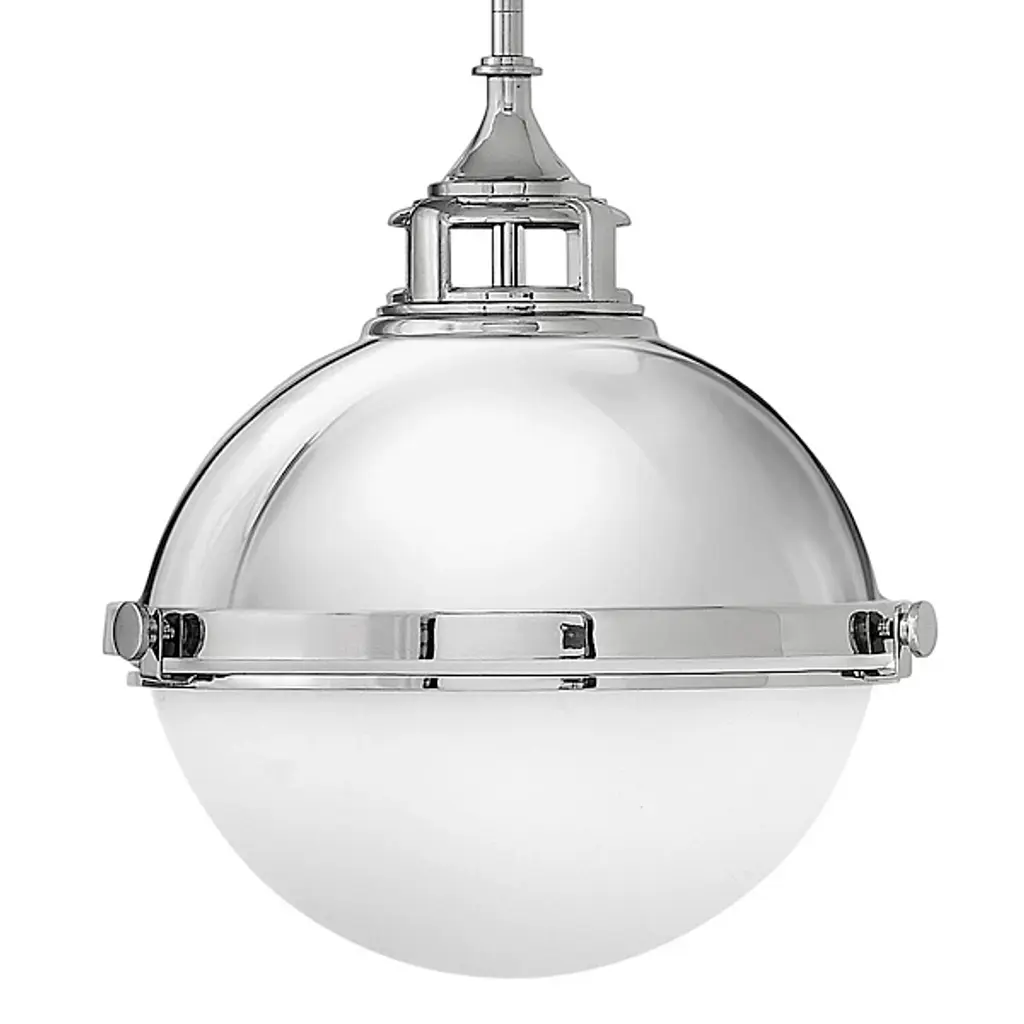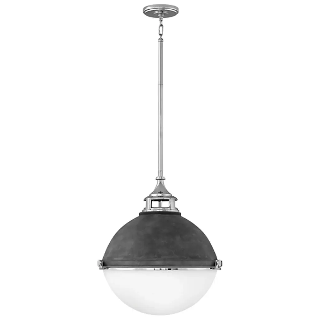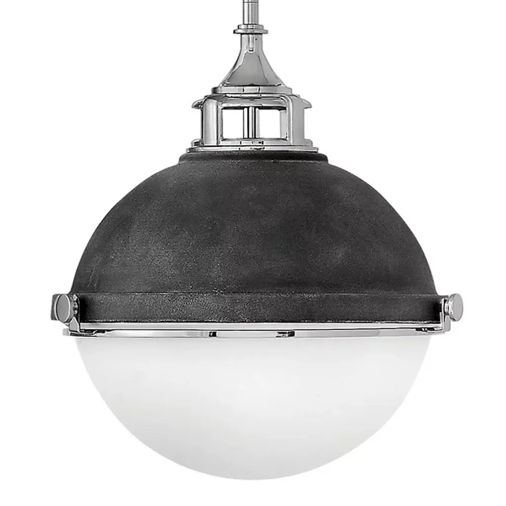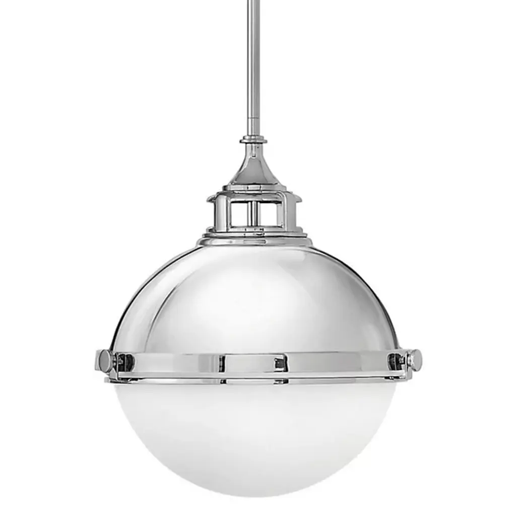 The Hinkley Lighting Fletcher Pendant is a chic fixture that transcends styles from classic to contemporary. A seamless dome of opal glass is fitted to a steel dome with a contrasting capture ring as well as visible hardware. Both minimal in shape while still having intricate detailing, this pendant will enhance a range of interior styles from more transitional to contemporary.