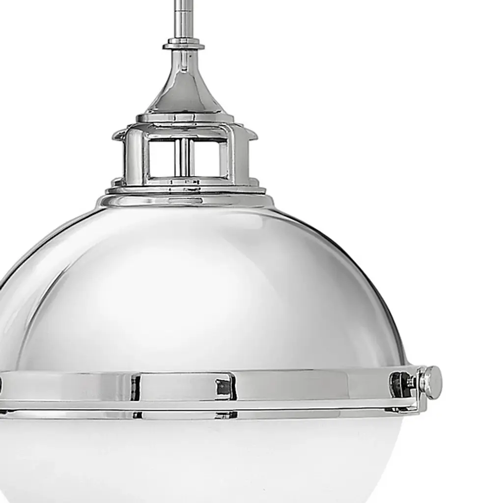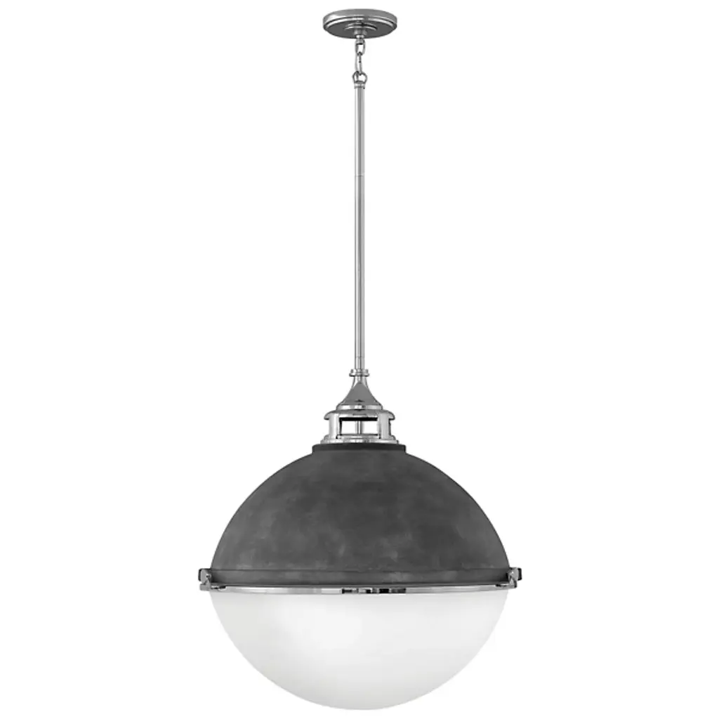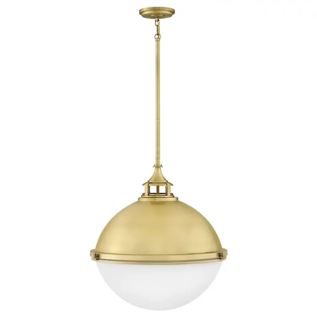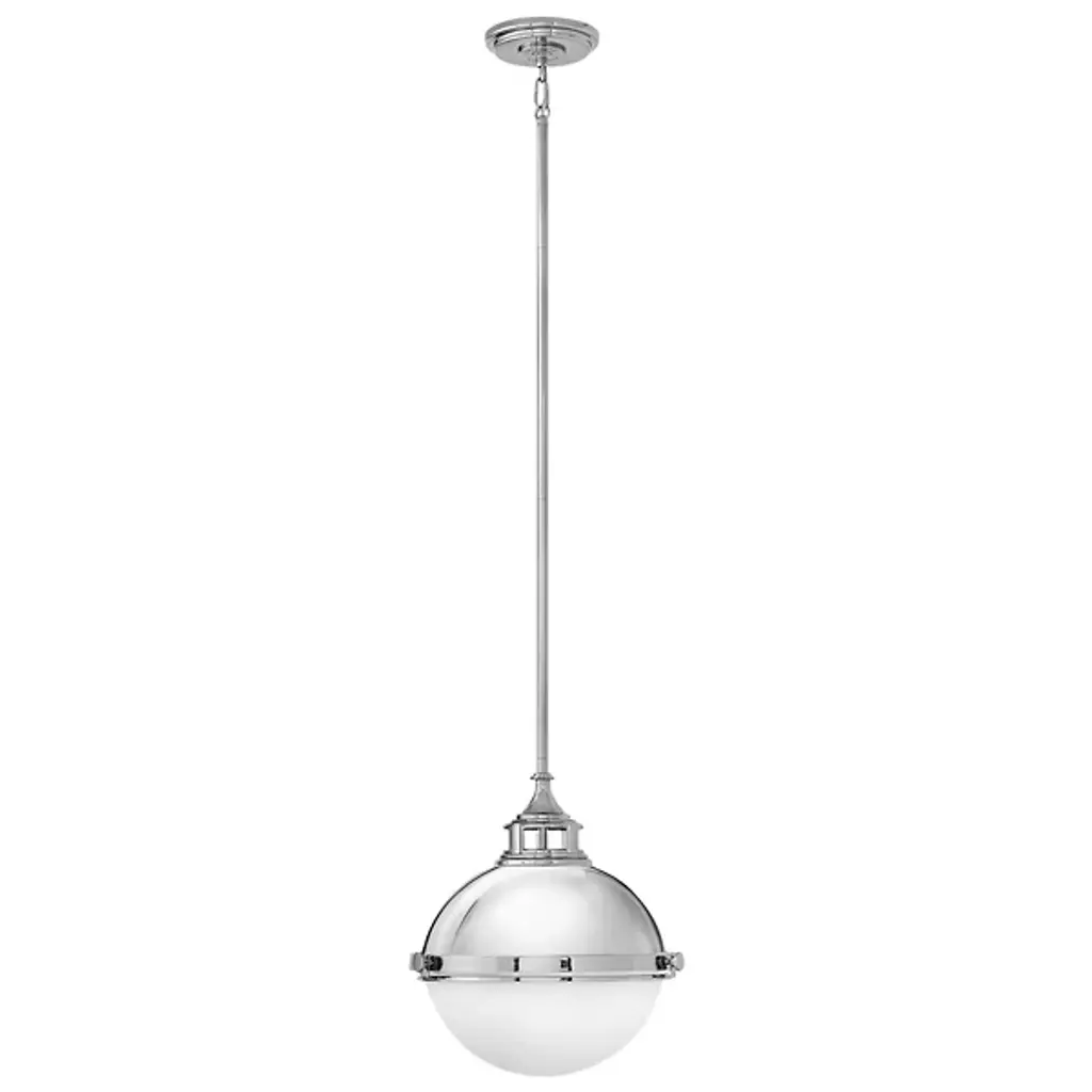 The Hinkley Lighting Fletcher Pendant is a chic fixture that transcends styles from classic to contemporary. A seamless dome of opal glass is fitted to a steel dome with a contrasting capture ring as well as visible hardware. Both minimal in shape while still having intricate detailing, this pendant will enhance a range of interior styles from more transitional to contemporary.