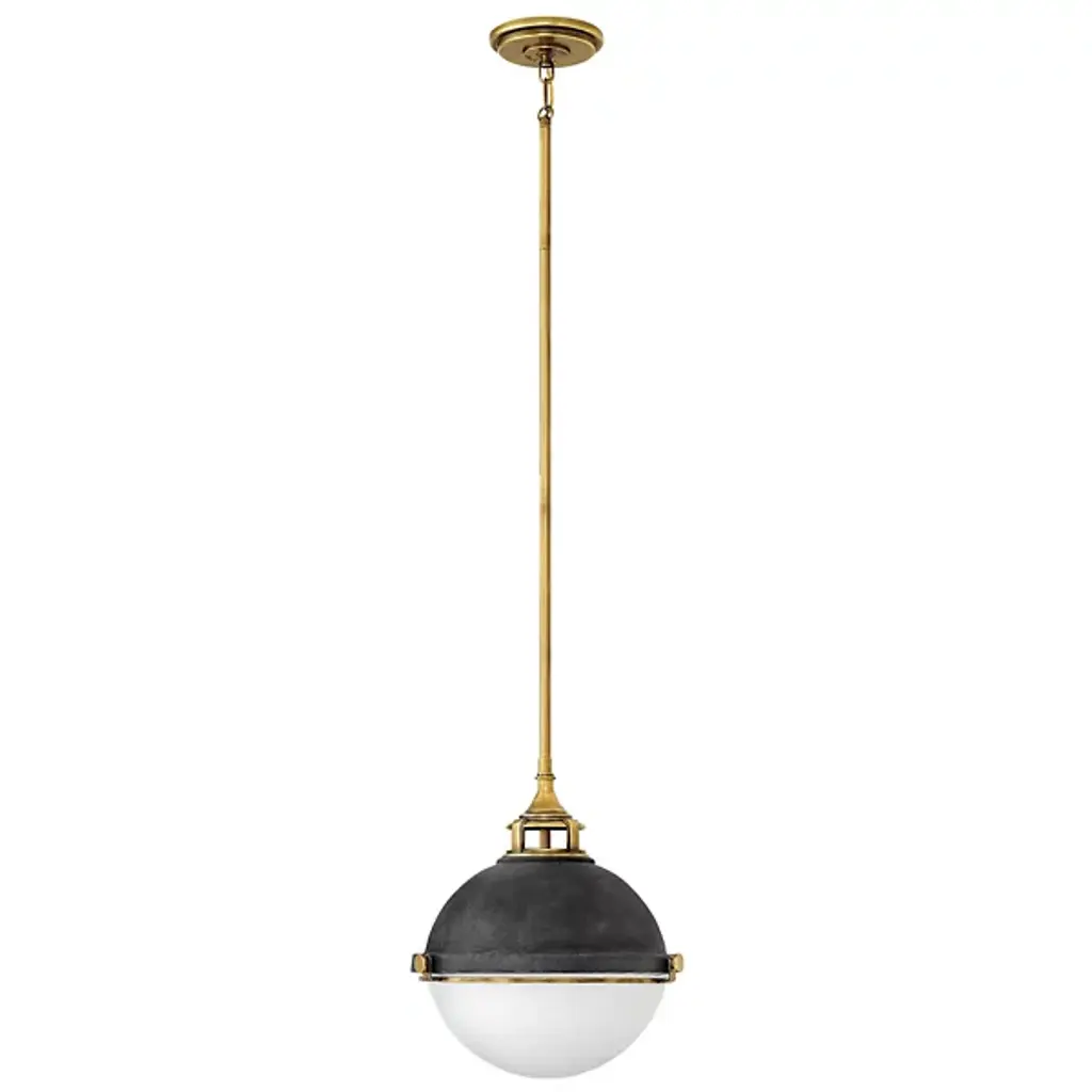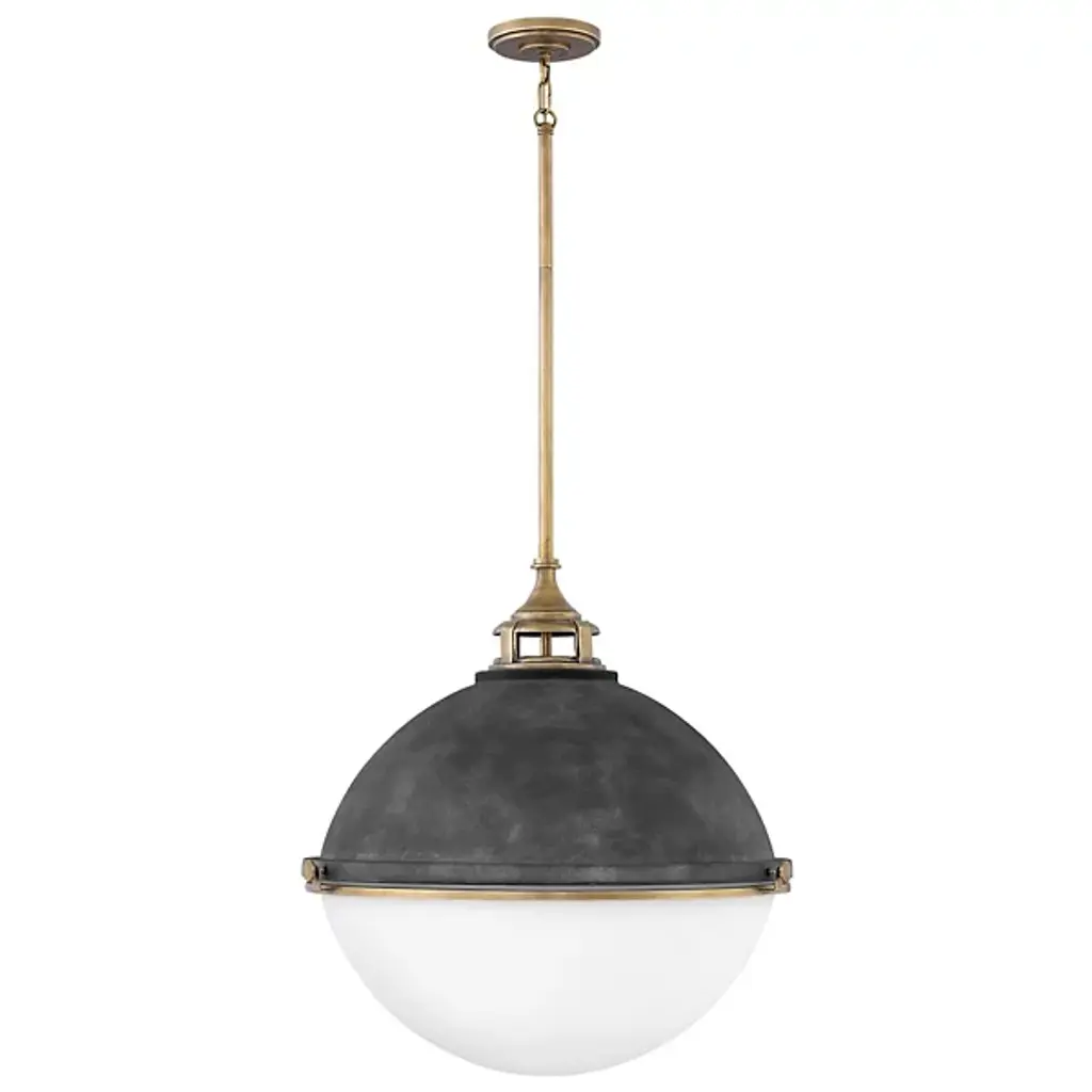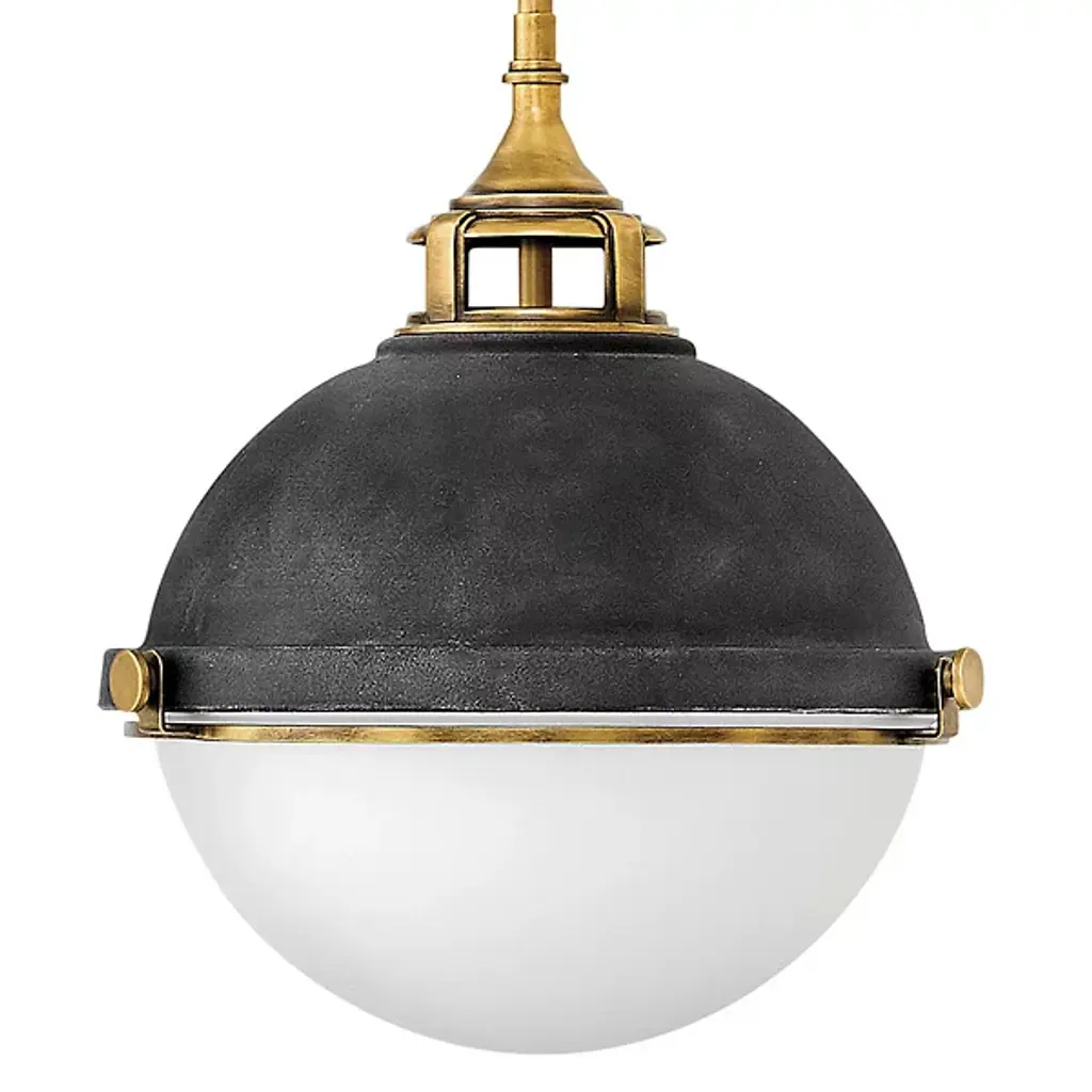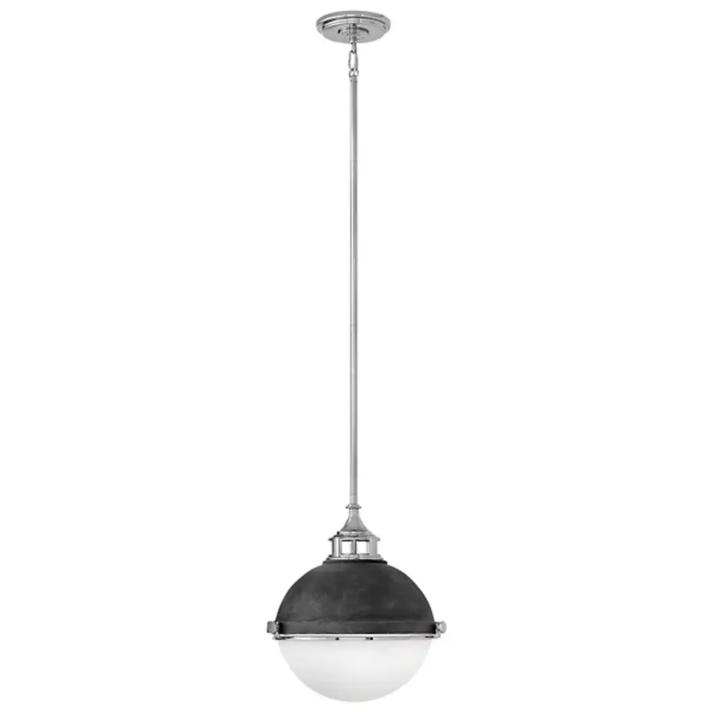 The Hinkley Lighting Fletcher Pendant is a chic fixture that transcends styles from classic to contemporary. A seamless dome of opal glass is fitted to a steel dome with a contrasting capture ring as well as visible hardware. Both minimal in shape while still having intricate detailing, this pendant will enhance a range of interior styles from more transitional to contemporary.