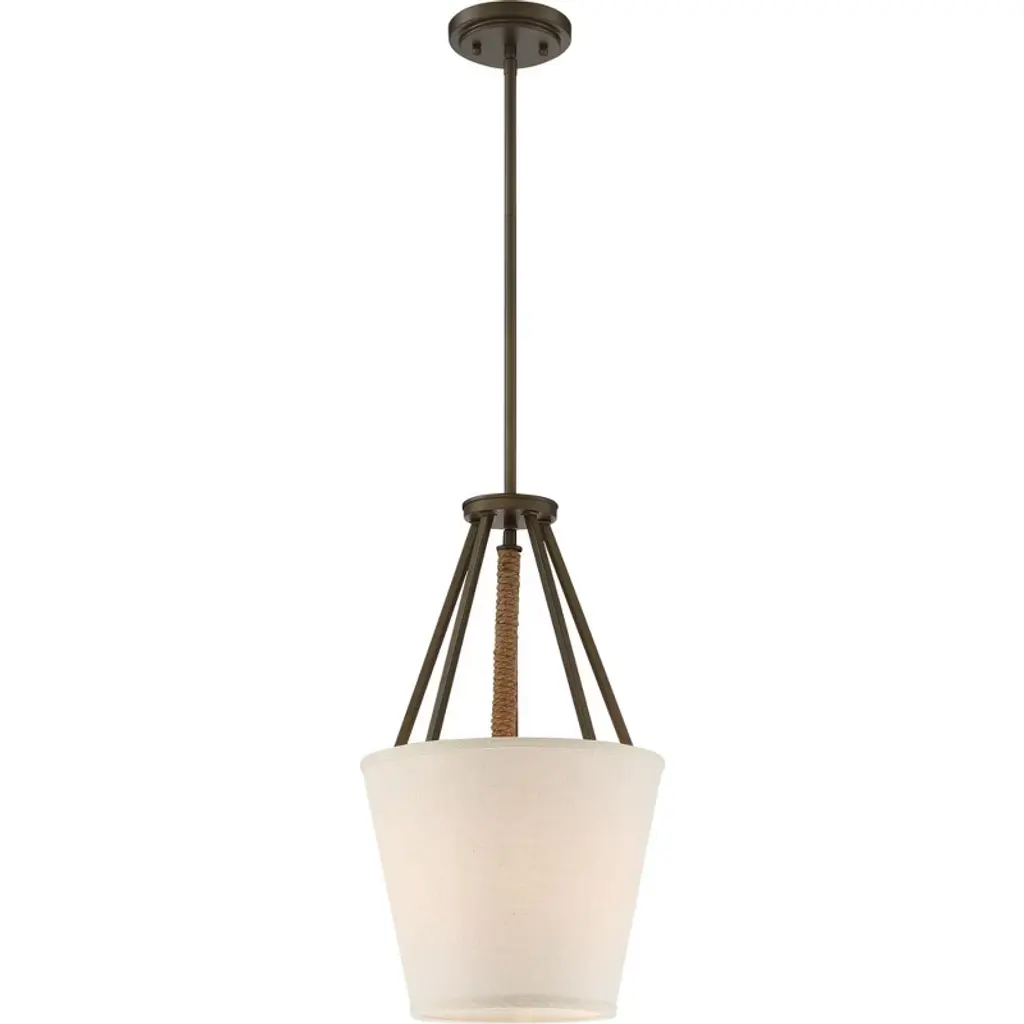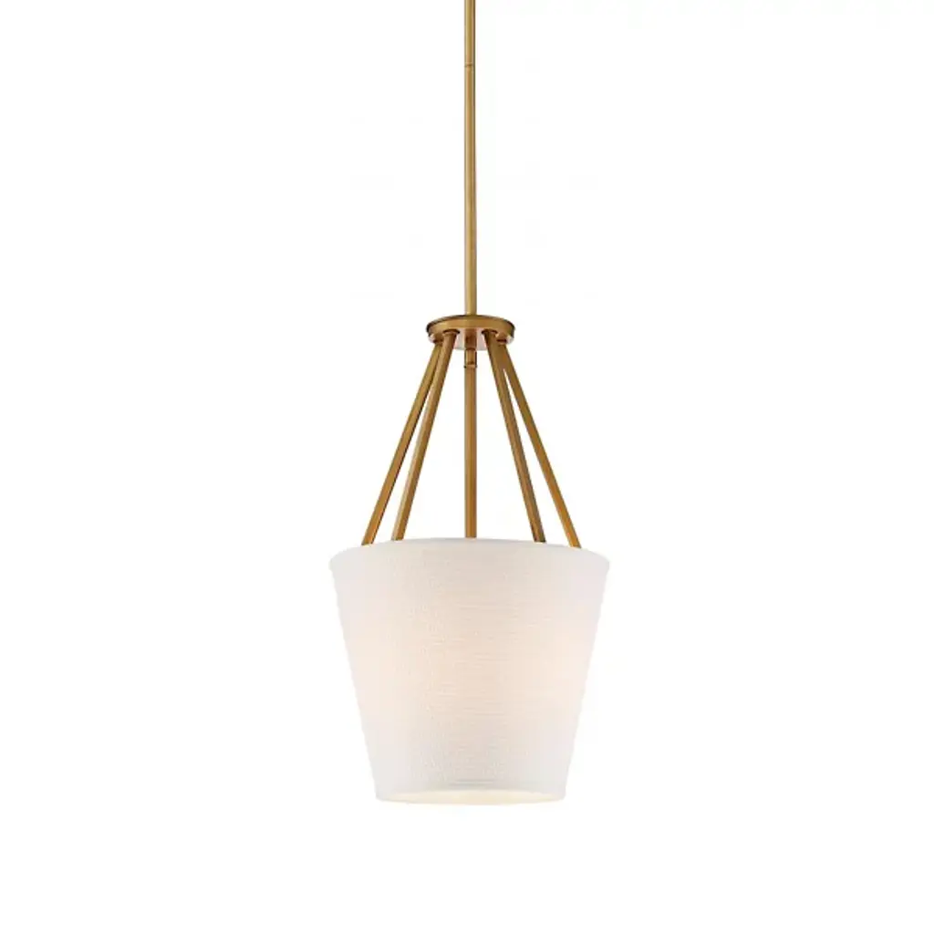 The Fletcher Pendant by Alder & Ore has a cool, clean composition that lends a little contemporary style and a bright touch to surroundings. Suspended by a single downrod, an array of metal arms tapers out to meet a crisp, fabric shade. This shade tapers downwards to create a convex silhouette with an airy feel. Paired with a glass diffuser, this fixture softly filters an even layer of light throughout its form and a beautiful finish dresses up the metal elements to complete the look of this pendant.