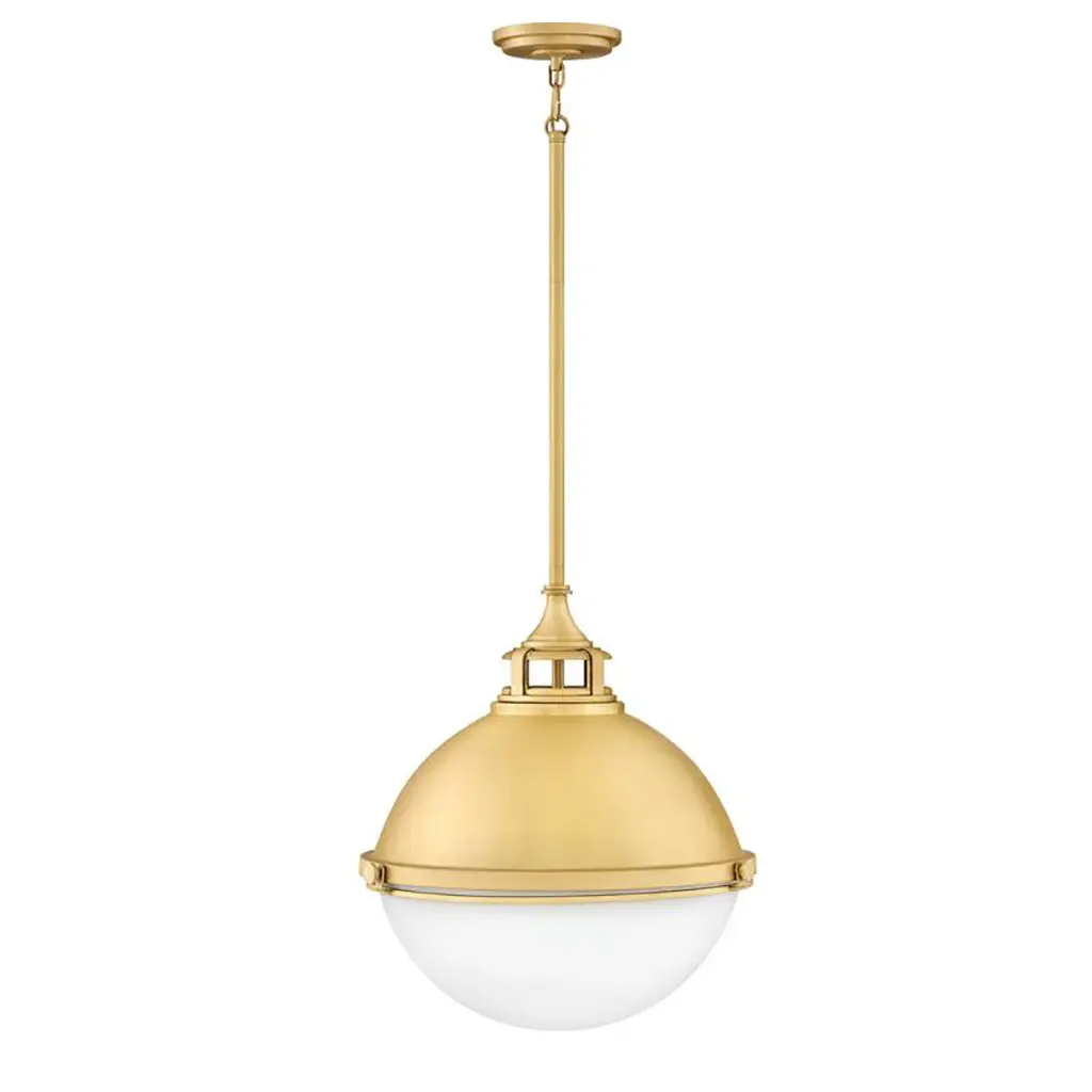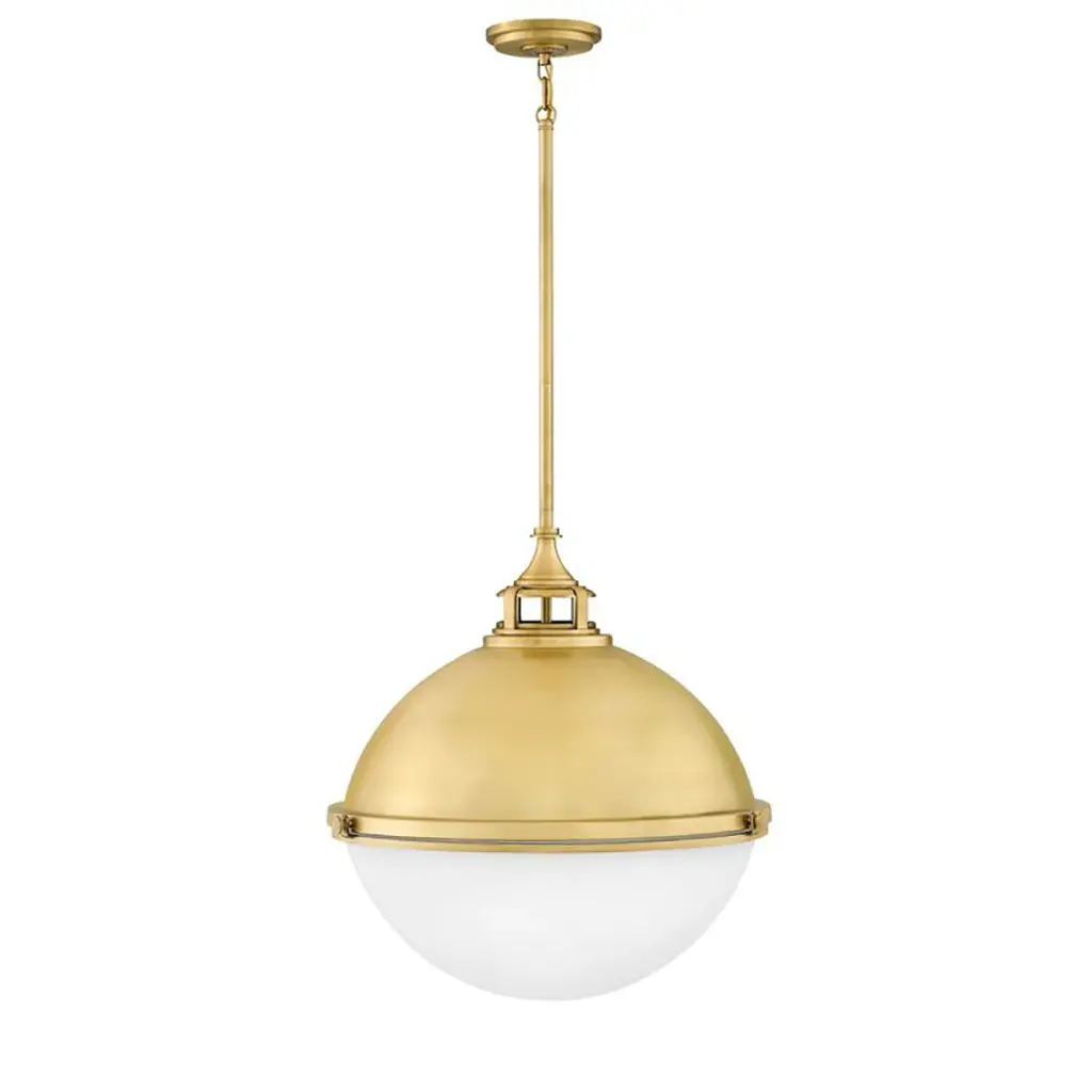 Enhance an industrial-style space with the striking Fletcher Pendant from Hinkley. The rounded fixture is composed of a dome shade made of etched opal glass and a steel cast fitter that hangs from a slim stem. Decorative knobs complete the industrial aesthetic. Available in three sizes and two finishes, you’ll have an easy time matching the pendant to your existing decor. Use it to illuminate your kitchen, hallway, or a cozy reading nook. Features