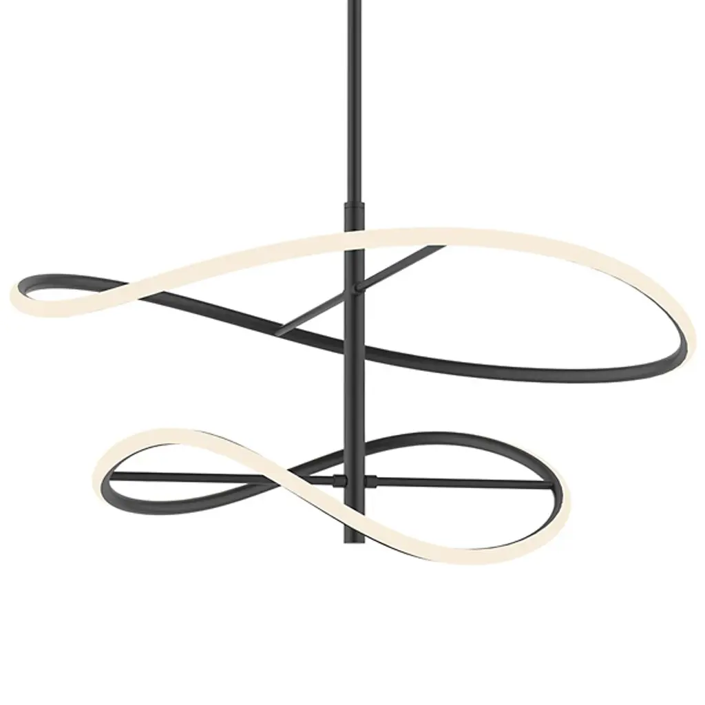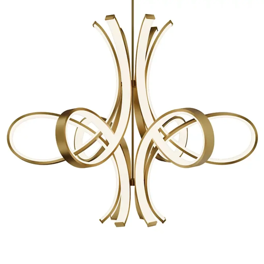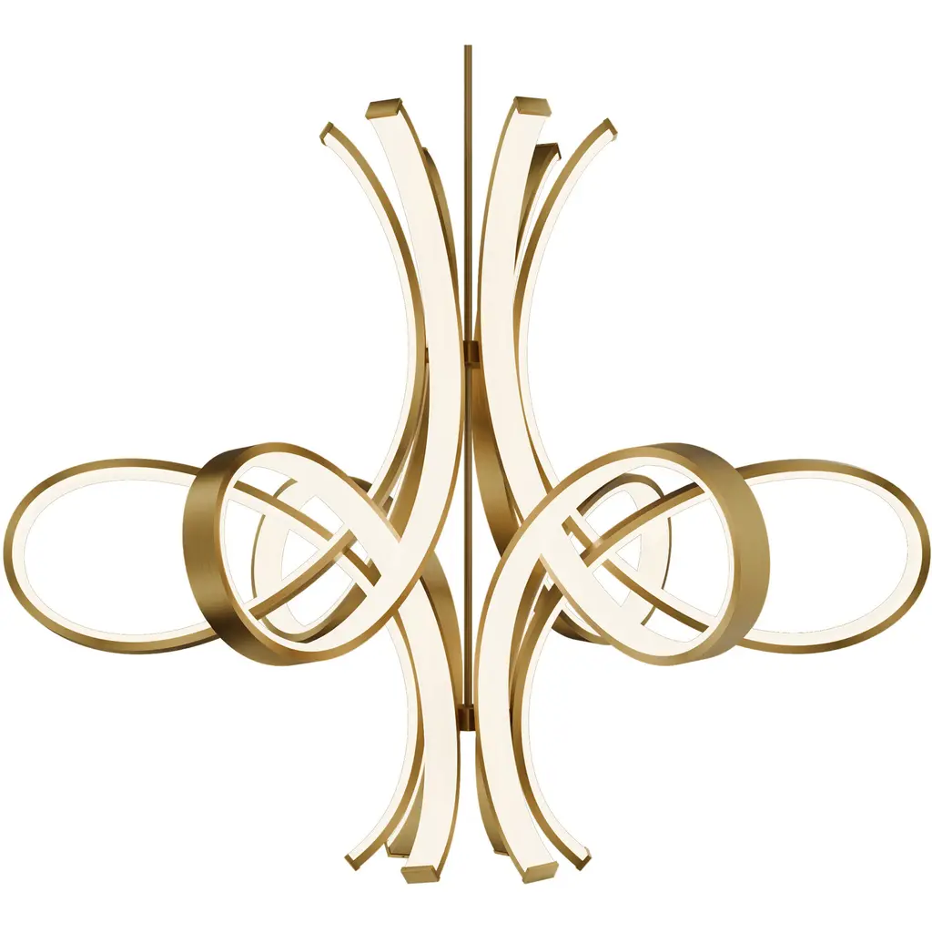 A modern take on the iconic fleur-de-lis shape, the large-scale Fleur de Lis contemporary pendant features gracefully swooping metal arms that evoke a sense of movement and sophistication. Each arm is lined with sleek LED diffusers, offering brilliant yet soft 3000K illumination that fills the room with a warm, inviting glow. This 56-inch sculptural pendant is available in a choice of aged brass and black finishes.