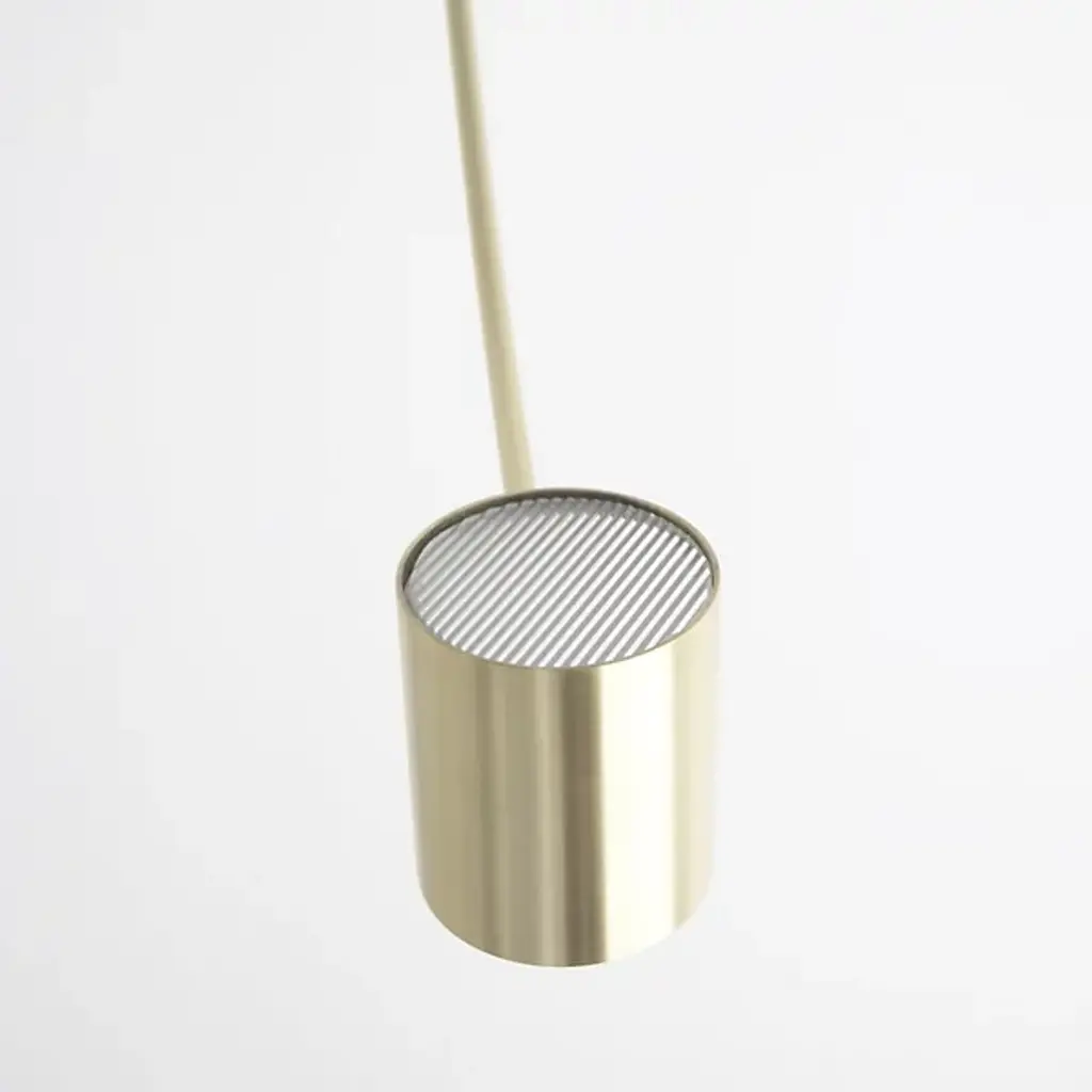 Both a practical light and an airy illuminated sculpture, the Float Round LED Pendant from Ladies and Gentlemen Studio refines and defines its space with eloquent ease. Suspended from a subdued canopy, its design focuses on a single moment of suspension, using a long, slender downrod to support a curving armature that terminates in a two-sided LED lamp set inside a cylinder housing. The uplight reflects off and is diffused by a disc of glass, accompanying the direct spot of downlight that sweeps out below.