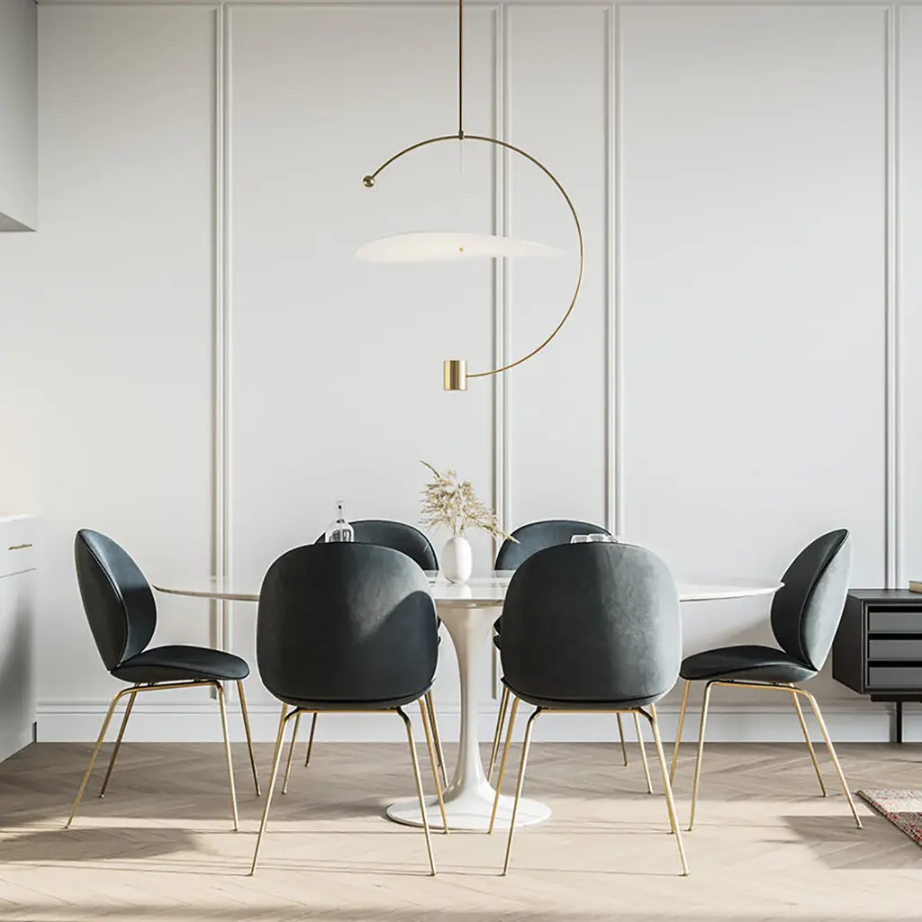 Ladies & Gentlemen continues its exploration of kinetic hanging fixtures with Float, in essence a suspension lamp as illuminated sculpture. Within a hanging ring structure, a seemingly floating shade reflects the illumination from the integrated LED below for a soft surrounding glow. Available in brushed gold-tone or blackened brass, it's a striking yet versatile lighting choice for the dining table, conference room, reception area or conversation setting.