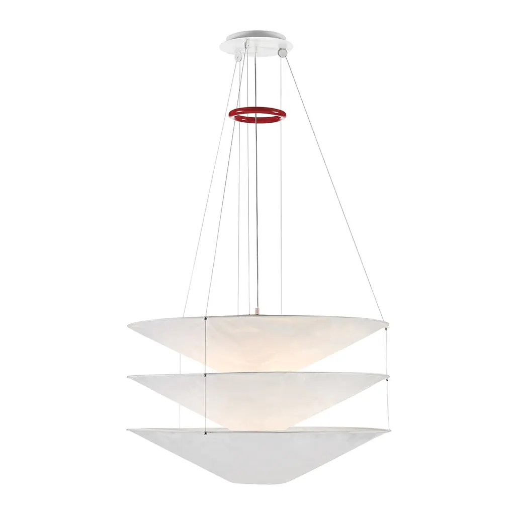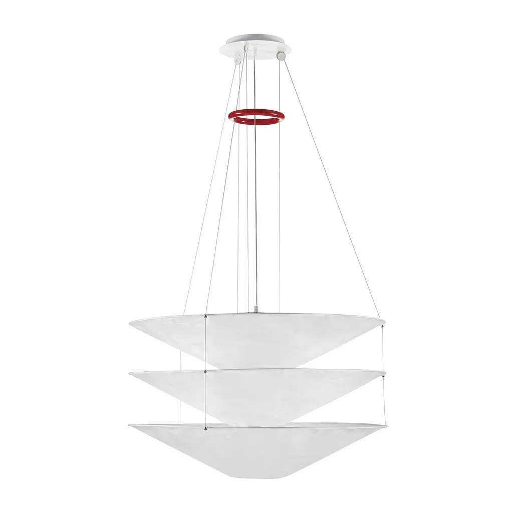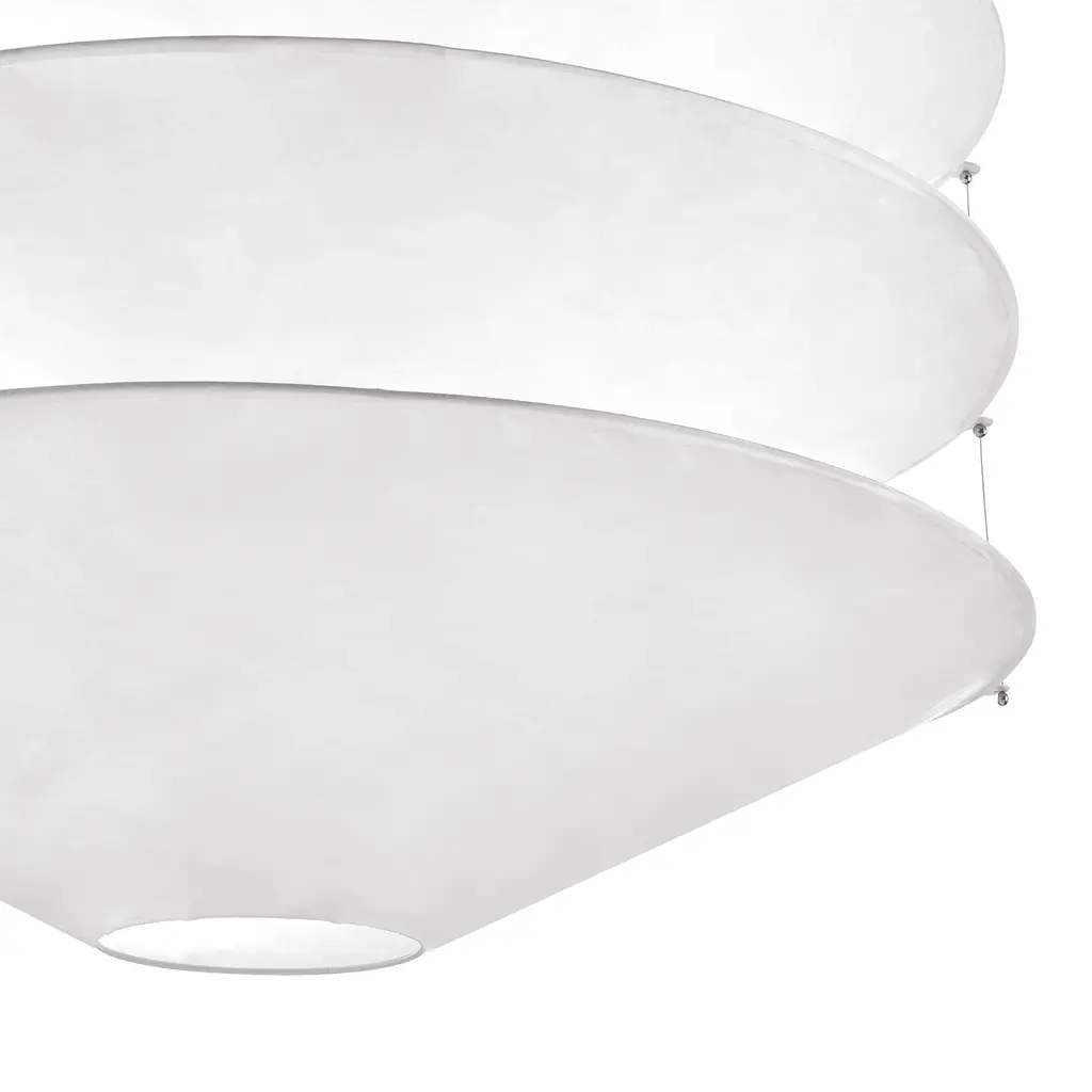 The Floatation Suspension Paper Pendant Lamp is a poetic dance of light and form, and a mix of materials converge to create an enchanting pendant lamp. With layers of gracefully suspended elements that resemble paper, except its performance is nothing paper-like, it imparts a sense of weightlessness, evokes a feeling of serenity, and elevates the space it graces into an artful realm of illuminated beauty.