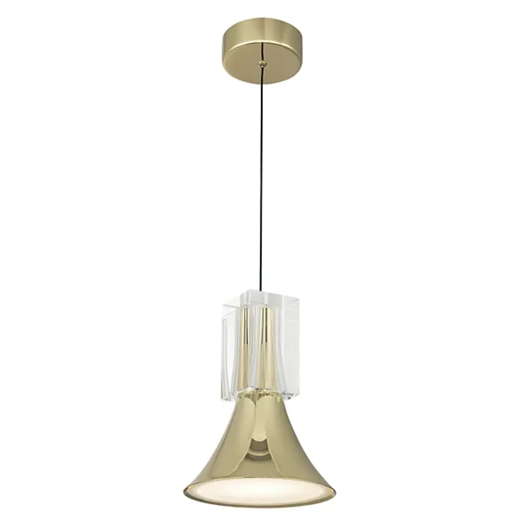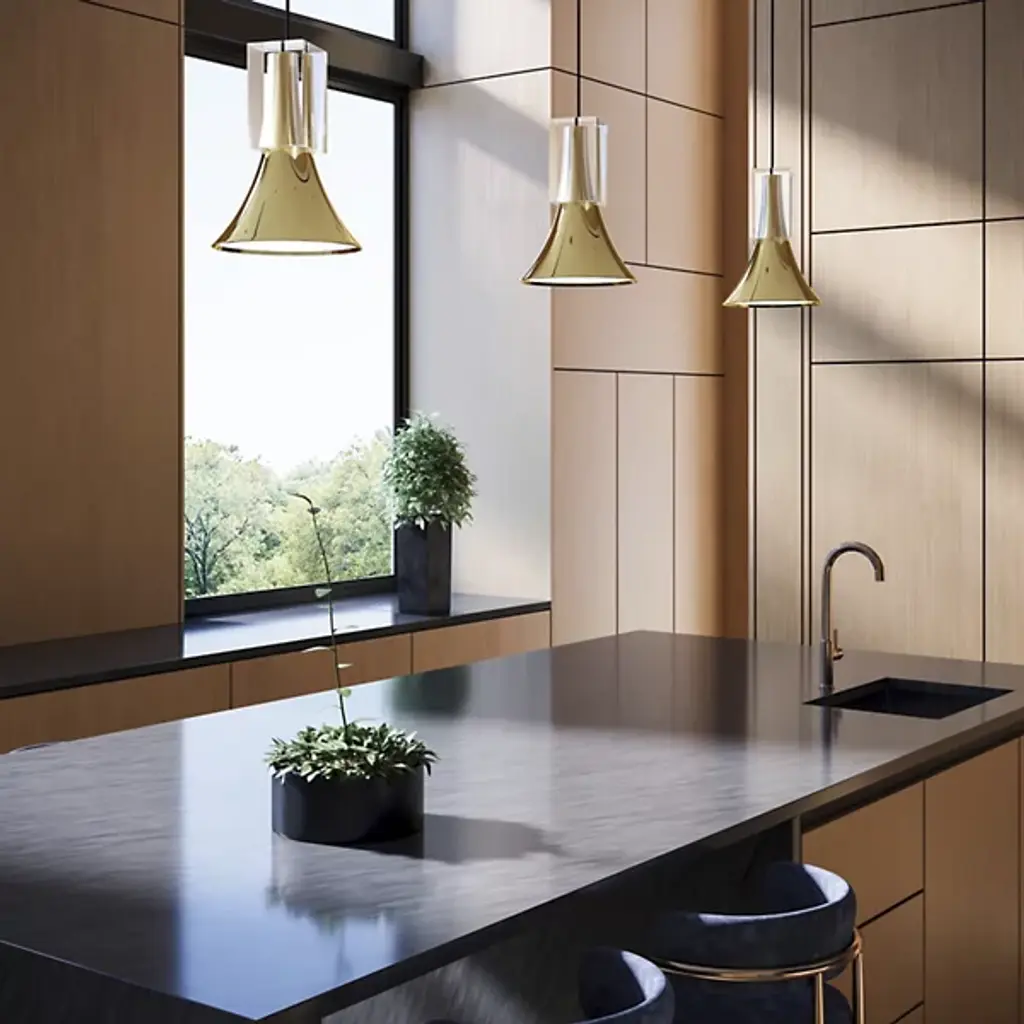 The Floe LED Mini Pendant from Kuzco Lighting captures attention with its crystal accents that refract light like the sun through the ice. Alex Brokamp's nature-inspired creation directs illumination downward through a frosted acrylic diffuser, casting gentle pools of light ideal for kitchen islands and dining areas. The wire suspension system accommodates sloped ceilings while maintaining the pendant's graceful profile. Steel construction provides structural integrity while allowing the crystal elements to remain the visual centerpiece. Unlike purely functional pendants, this fixture adds narrative to your space through its glacier-inspired form.