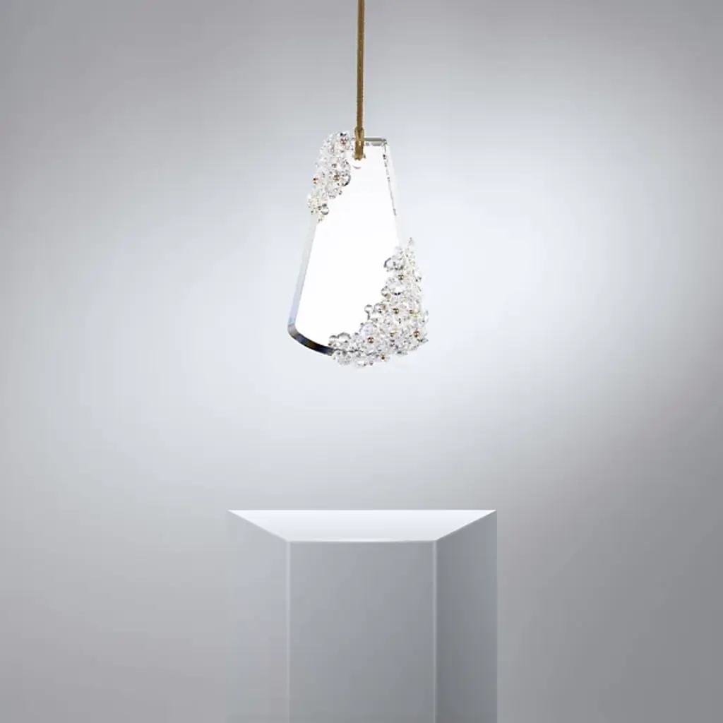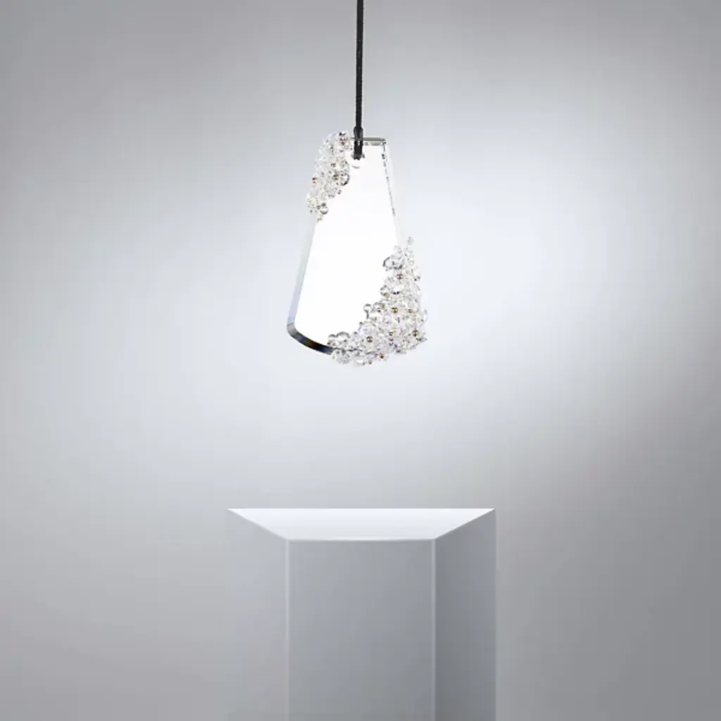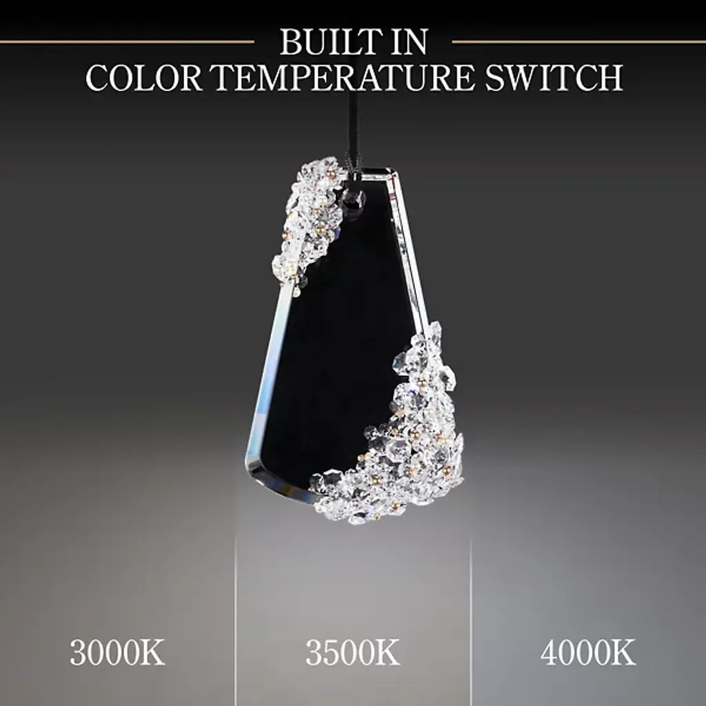 Crafted from premium steel and aluminum, the Flora LED Pendant from Schonbek Forever is a stunning fusion of geometric allure and sparkling opulence. This luminaire showcases a softly contoured triangular form, gracefully suspended within an array of Schonbek’s finest Radiant Crystal. Swarovski pearls delicately adorn the crystal composition, adding a dash of sophistication and refinement. The pendant comes complete with an orientation-aligning ring near the canopy, allowing for installation on sloped ceilings. With a built-in color temperature adjustability feature, the Flora Pendant is suspended using a braided nylon rope.