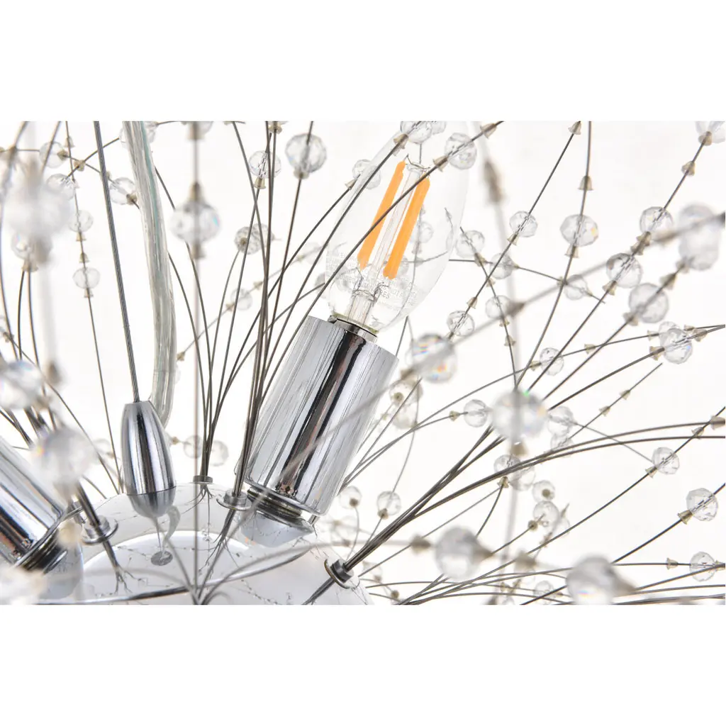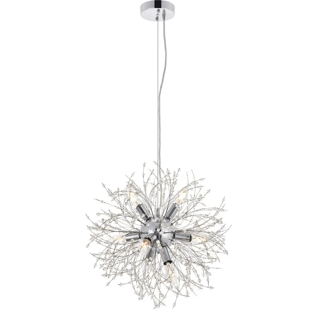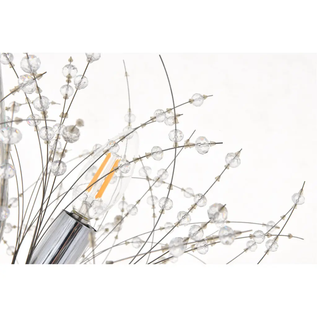 As if in a dream, this Flores collection pendant lamp in a chrome finish will guide you to where you need to go. Despite being reminiscent of a beautiful bouquet of flowers in the dreamlike springtime world, this light is perfect year-round. With 8 lights playing hide-and-seek within the strands of crystals, this pendant is the perfect cheerful addition to any home.