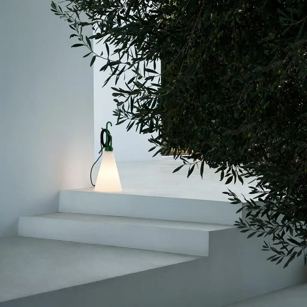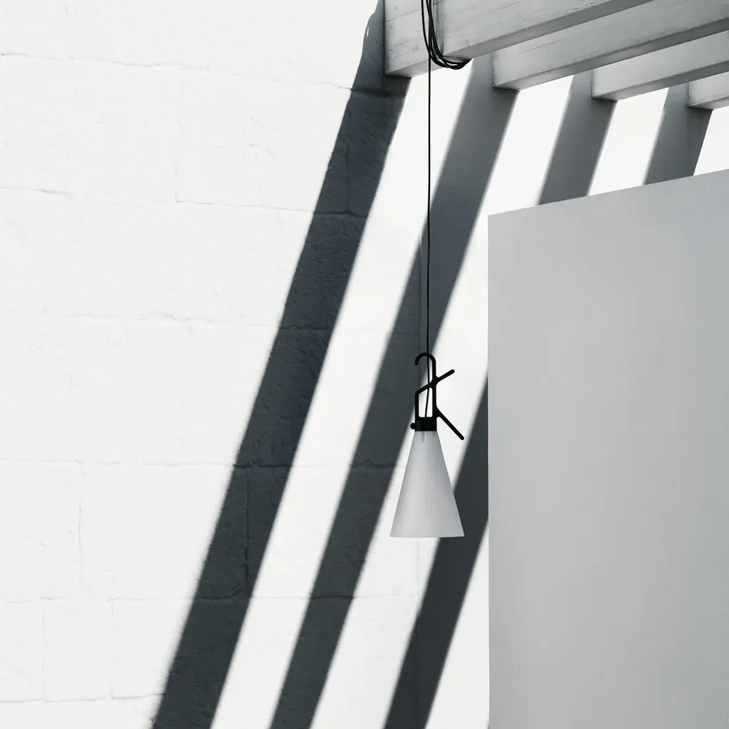 Flos Mayday Outdoor Pendant in Black with Polypropylene Frame by Konstantin GrcicMultipurpose lighting appliance suitable for installation outdoors. Hook/handle, which also works as a cable winder, and an injection-moulded opaline conical diffuser made from sustainable polypropylene produced from industrial process waste. Button switch located on the handle. The light source is protected from atmospheric agents by a transparent airtight capsule made from sealed polymethyl methacrylate with an elastomer gasket that helps achieve a protection rating of IP 65. As no glue is used in the assembly process, Mayday is easy to dismantle so that every part can be properly recycled.Additional Information:Material: Polypropylene, polymethyl methacrylateColor: BlackEnvironments: Outdoor wet locationVoltage: 220-240VPower: Max 10WDimensions: Ø 8.66 x 20.86 H inchWarranty: 2 YearsAvailable in other color options: Mustard yellow, leaf green