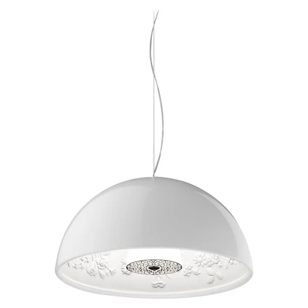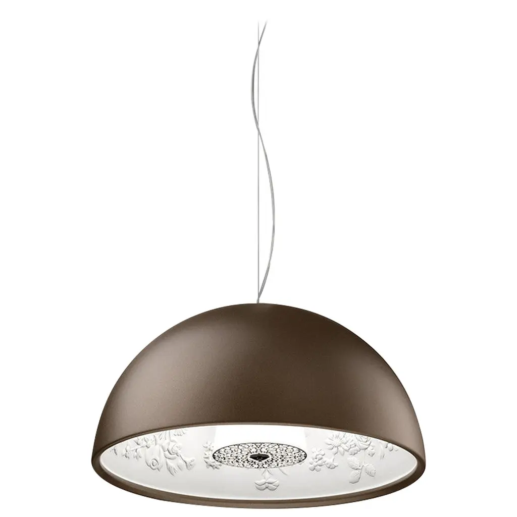 Flos Small Skygarden Pendant Dimmable Light in Matte Black by Marcel WandersImagine a stunning display blooming above you: Created by Marcel Wanders, the Skygarden S is just that. A gracefully hanging hemisphere, the pendant lamp makes a powerful impression with its sheer size. However, it is the inner diffuser in white painted cast plaster that steals the show. Standing beneath it, you will see the intricate design that gives this piece its name.The Skygarden’s plaster diffuser support is die-cast aluminum alloy. Its upper cable gland and blocking ring nut come in black injection-molded PC (polycarbonate). Shaped adjustment screws are included.The upper and lower silicone shock absorbers are injection-molded and transparent. The lamp-holder and fixing support come in PPS. The diffuser is flashed and blown opal glass. The molded fixing ring nut is die-cast aluminum alloy with alodine plating. The frieze is photo-etched and mechanically drawn AISI 304 steel. The ceiling attachment is molded and galvanized steel ceiling attachment. It has a gray, injection-molded PA6 (Nylon) rose, steel wire, and a FEP/SIL UV-stabilized transparent power cord.Inspiration behind the design: A house Marcel Wanders once lived in, which featured an old and ornate plaster ceiling that he dubbed his “Skygarden,” inspired this artistic piece. Wishing that he could take this “garden on the ceiling” with him when he moved, Wanders created this pendant lamp so that he could do just that—and then share it with the world.Additional Information:Material: Plaster, Glass, Stainess steelFinish: Matte BlackModel: Small - 15.7'' DiameterMounting: Ceiling PendantLamp ID: L00068 L00010Environment: Indoor - Dry LocationLamp (Bulb) Description: LED 9.5W E12 2700K CRI90 950lmDimmable: Phase-cut Dimming / Triac Type (not included)Voltage: 120IP Rating: IP20Cord Length: 106 inch ClearDimensions: Ø 15.7 x 7.8 H inchAvailable in other finish options: Black, Brown, Gold, WhiteAvailable in other model options: S1 - 23.6" Diameter, S2 - 35.4" Diameter