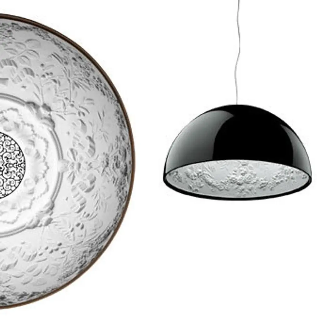 Flos Small Skygarden Pendant Dimmable Light in White by Marcel WandersImagine a stunning display blooming above you: Created by Marcel Wanders, the Skygarden S is just that. A gracefully hanging hemisphere, the pendant lamp makes a powerful impression with its sheer size. However, it is the inner diffuser in white painted cast plaster that steals the show. Standing beneath it, you will see the intricate design that gives this piece its name.The Skygarden’s plaster diffuser support is die-cast aluminum alloy. Its upper cable gland and blocking ring nut come in black injection-molded PC (polycarbonate). Shaped adjustment screws are included.The upper and lower silicone shock absorbers are injection-molded and transparent. The lamp-holder and fixing support come in PPS. The diffuser is flashed and blown opal glass. The molded fixing ring nut is die-cast aluminum alloy with alodine plating. The frieze is photo-etched and mechanically drawn AISI 304 steel. The ceiling attachment is molded and galvanized steel ceiling attachment. It has a gray, injection-molded PA6 (Nylon) rose, steel wire, and a FEP/SIL UV-stabilized transparent power cord.Inspiration behind the design: A house Marcel Wanders once lived in, which featured an old and ornate plaster ceiling that he dubbed his “Skygarden,” inspired this artistic piece. Wishing that he could take this “garden on the ceiling” with him when he moved, Wanders created this pendant lamp so that he could do just that—and then share it with the world.Additional Information:Material: Plaster, Glass, Stainess steelFinish: WhiteModel: Small - 15.7'' DiameterMounting: Ceiling PendantLamp ID: L00068 L00010Environment: Indoor - Dry LocationLamp (Bulb) Description: LED 9.5W E12 2700K CRI90 950lmDimmable: Phase-cut Dimming / Triac Type (not included)Voltage: 120IP Rating: IP20Cord Length: 106 inch ClearDimensions: Ø 15.7 x 7.8 H inchAvailable in other finish options: Black, Brown, Gold, Matte BlackAvailable in other model options: S1 - 23.6" Diameter, S2 - 35.4" Diameter