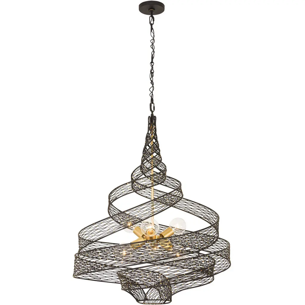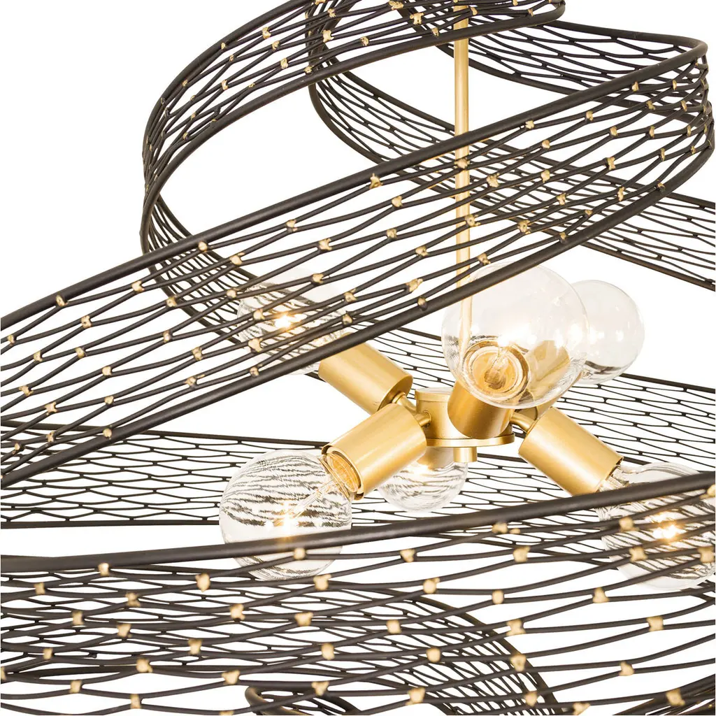 Flow 6-Lt Large Twist Pendant - Matte Black/French Gold
