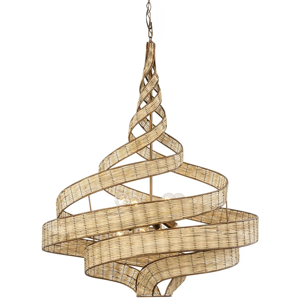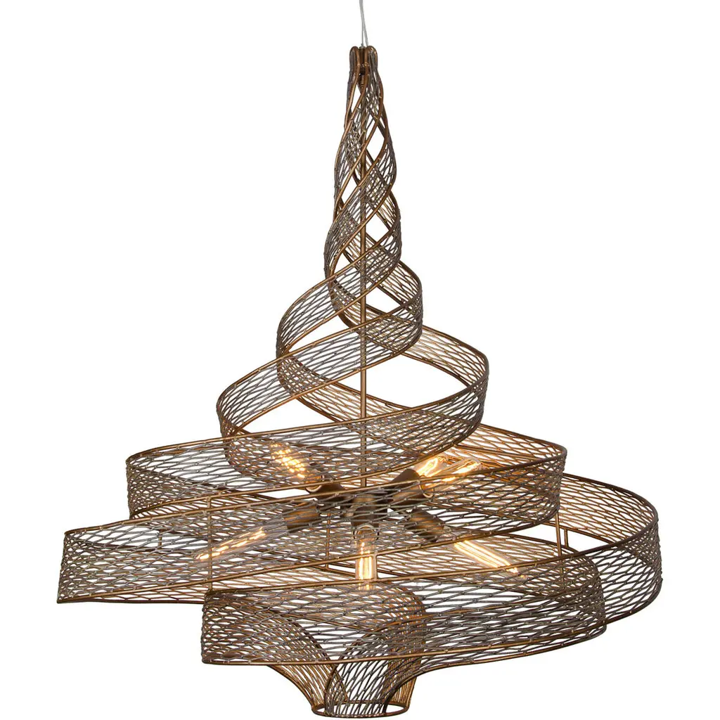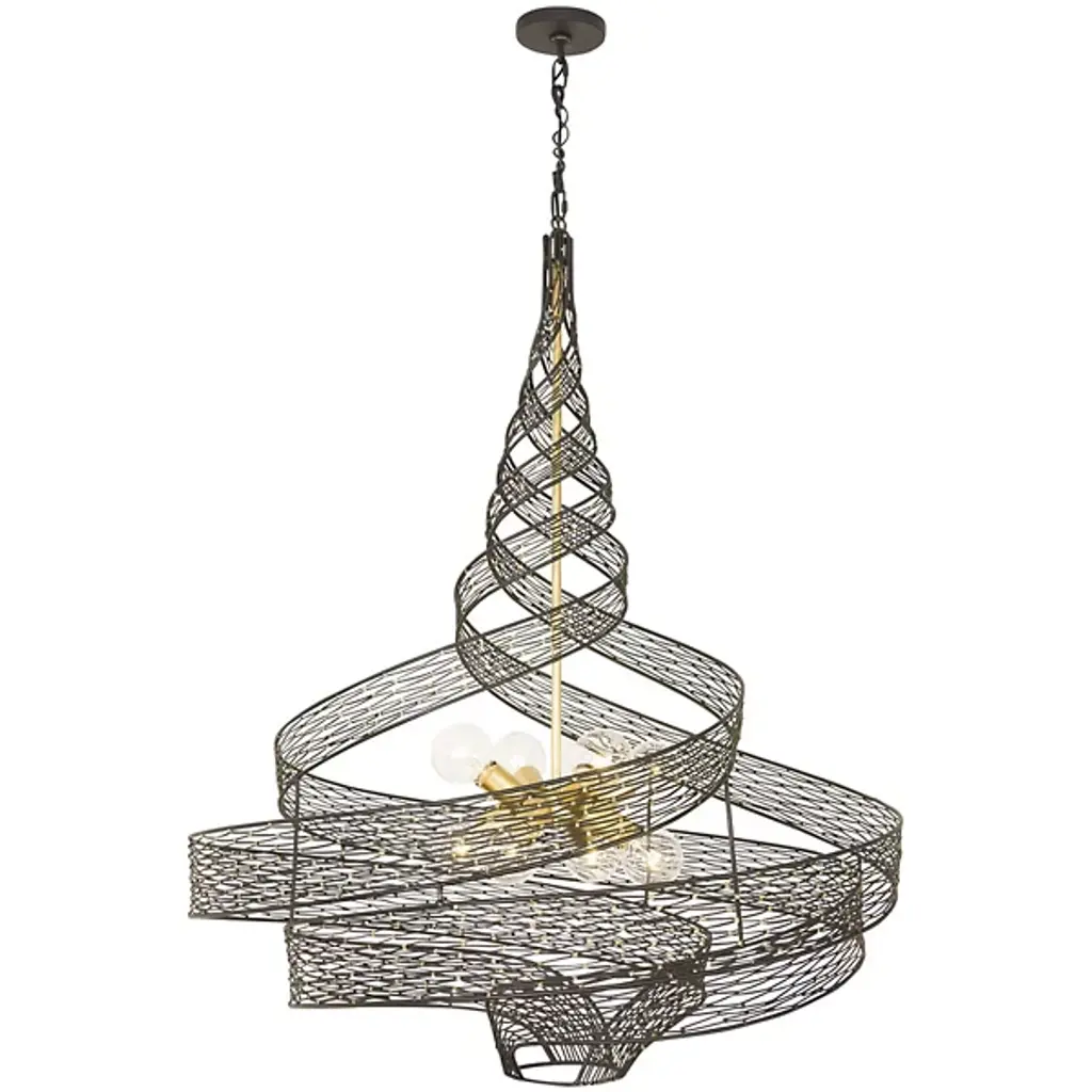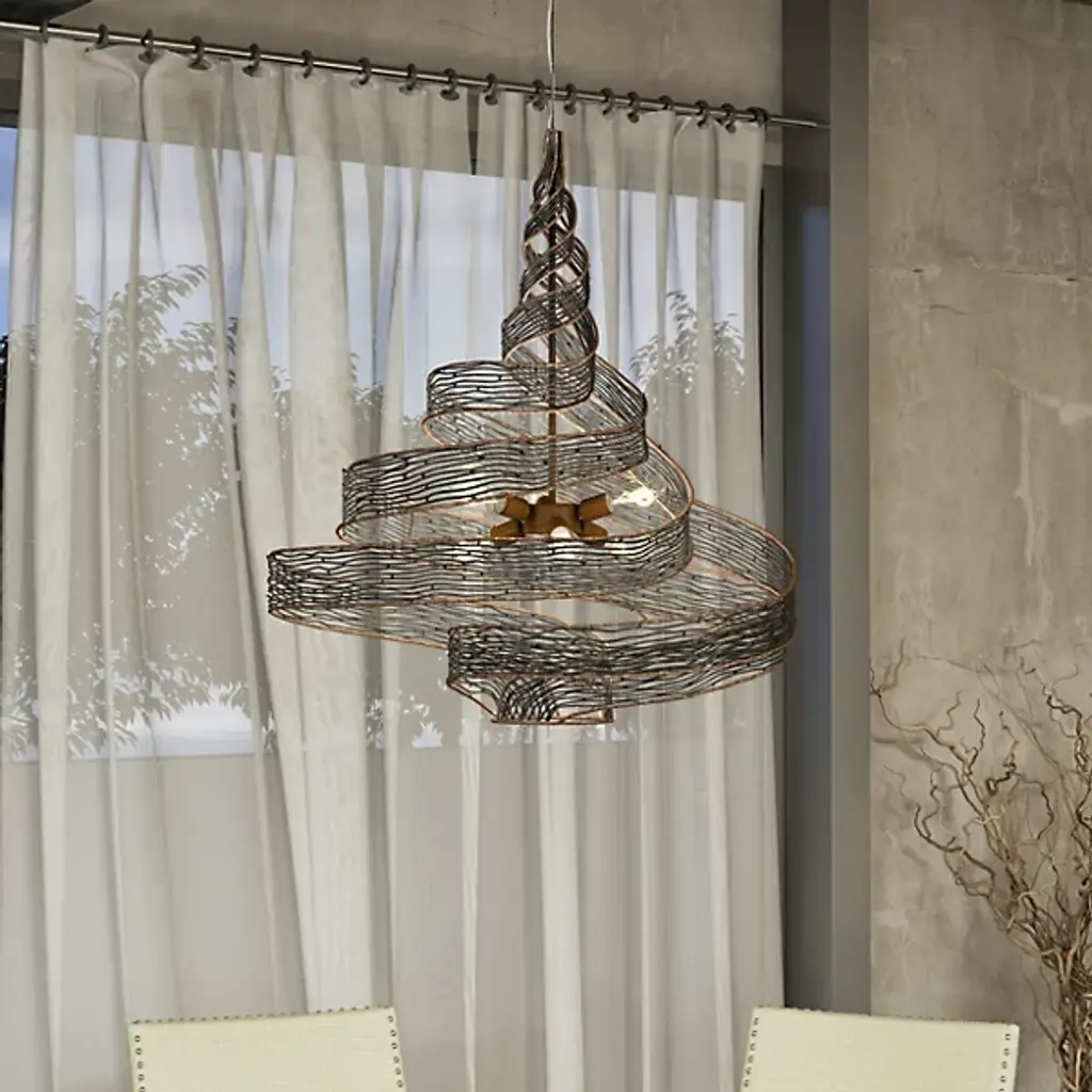 As though twisting in a soft breeze, the Flow 6-Light Large Twist Pendant by Varaluz brings a rhythmic, sensual exuberance to your living space. Despite the light, fabric-like appearance, its captivating design is actually made of a hand-forged recycled steel (finished in Hammered Ore) that wraps loosely around an inner candelabra. Once lit, a warm light exudes from the partially exposed lamping, filling the piece with an alluring, unforgettable ambiance.
