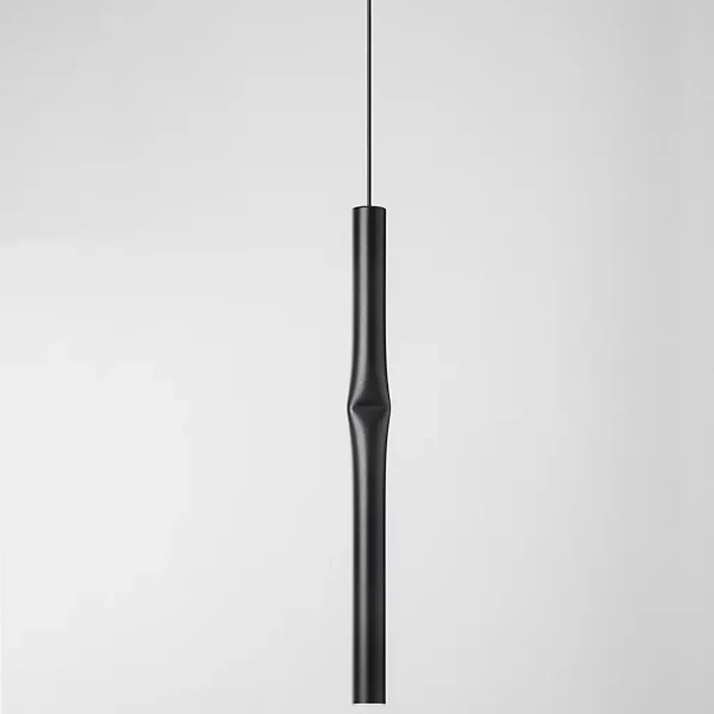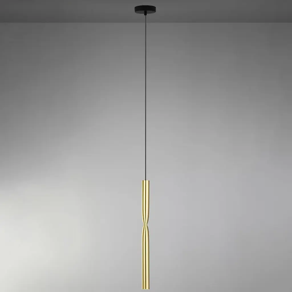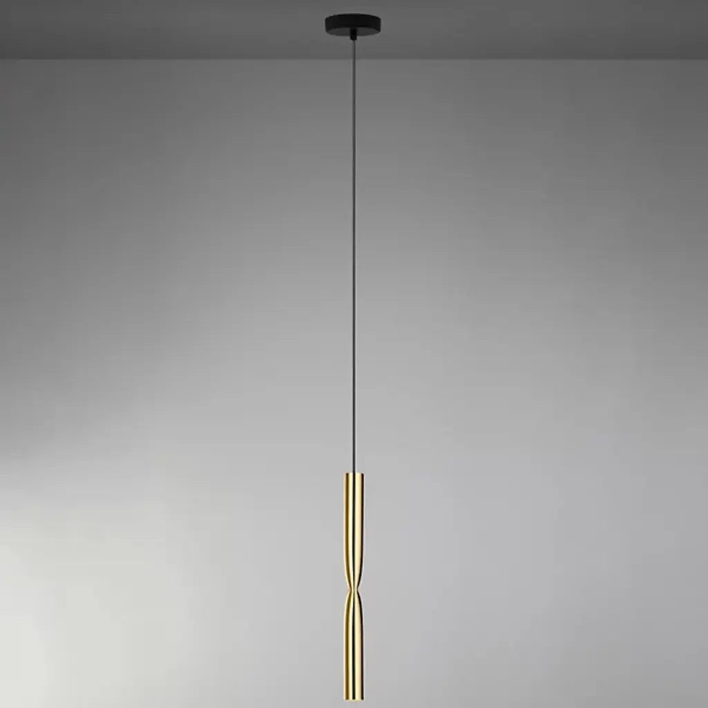 The simplicity and sophistication of the Flow LED Mini Pendant by Estiluz elevates interiors with minimal effort. From the Catalan-based Estudi Ribaudí, this fixture is comprised of a slender, stylized metal tube that hangs vertically from a thin cord. Ironically, the tube’s flow is interrupted by an indentation at its center, cinching the tube with a forceful accent. Its integrated LED emits soft light through an acrylic lens at its end, brightening the space while adding visual allure.