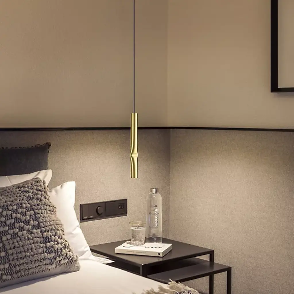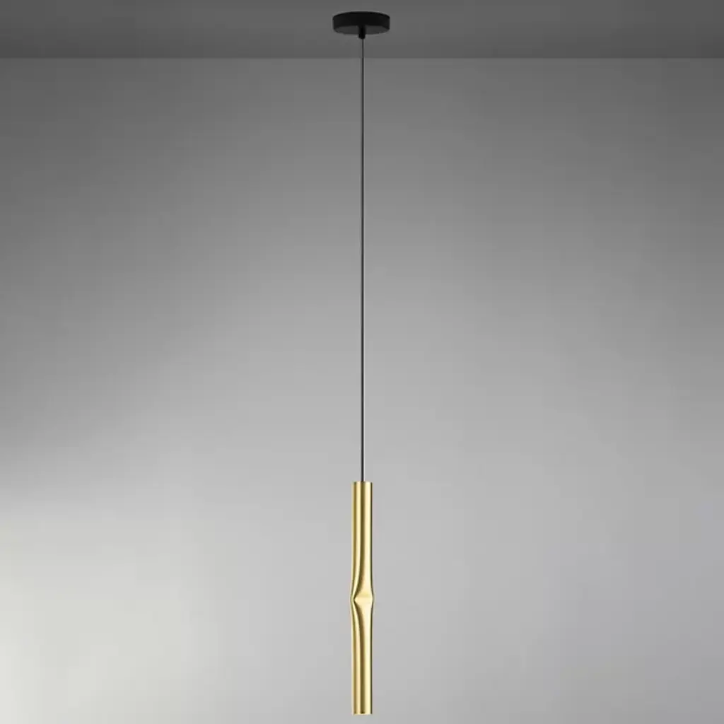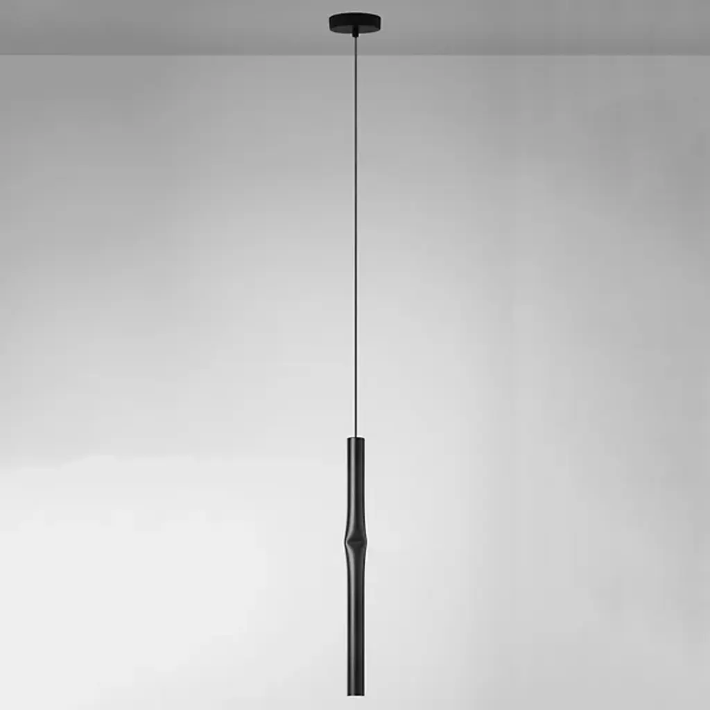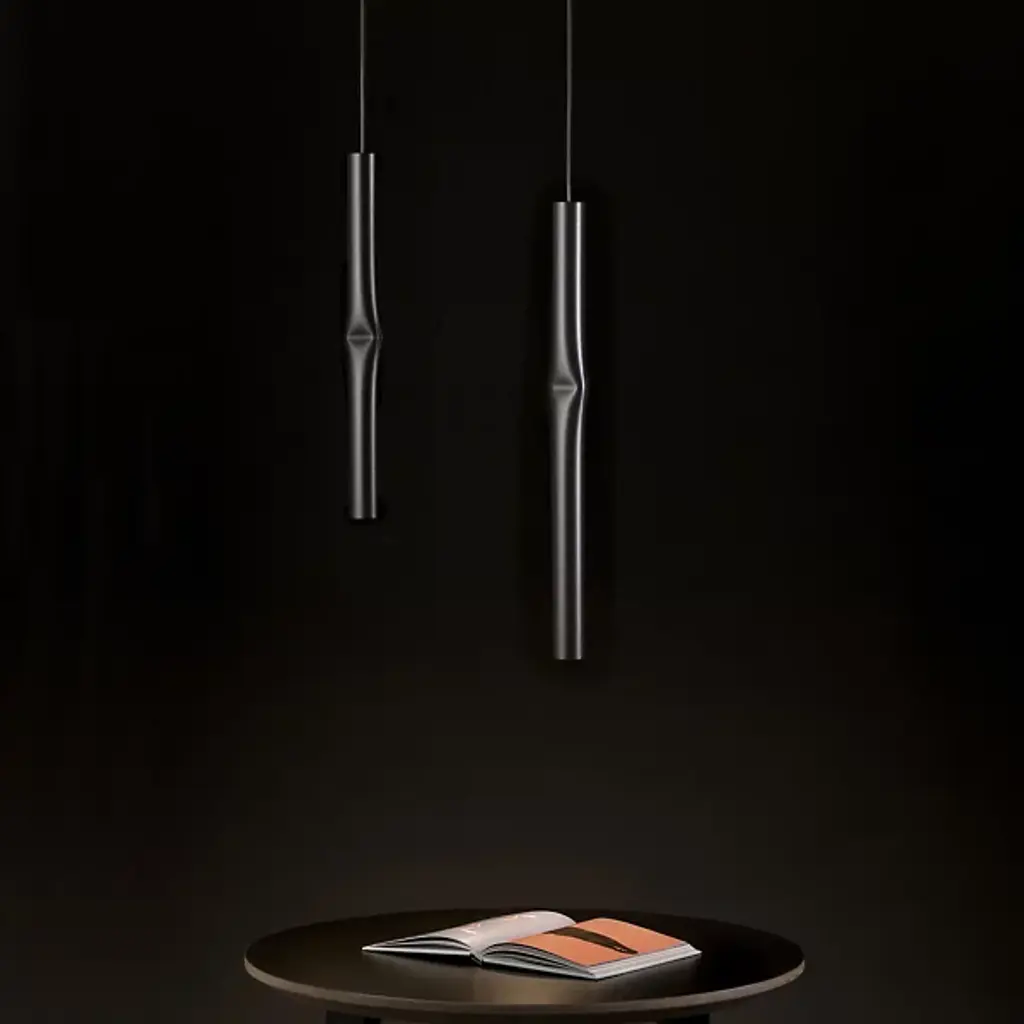 The simplicity and sophistication of the Flow LED Mini Pendant by Estiluz elevates interiors with minimal effort. From the Catalan-based Estudi Ribaudí, this fixture is comprised of a slender, stylized metal tube that hangs vertically from a thin cord. Ironically, the tube’s flow is interrupted by an indentation at its center, cinching the tube with a forceful accent. Its integrated LED emits soft light through an acrylic lens at its end, brightening the space while adding visual allure.