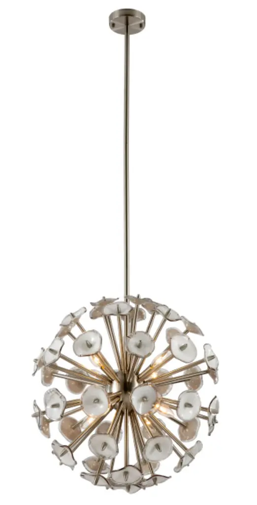 Infuse your ceiling space with organic appeal with the Flower Child Pendant from Minka-Lavery. This captivating transitional fixture presents layers of metal petals arranged in a stunning floral design. Suspended from a central stem, the intricate petals cast a mesmerizing interplay of light and shadow, forming enchanting leaf-like shapes throughout the room. Balancing playfulness with sophistication, this pendant offers a refined touch of nature-inspired beauty.