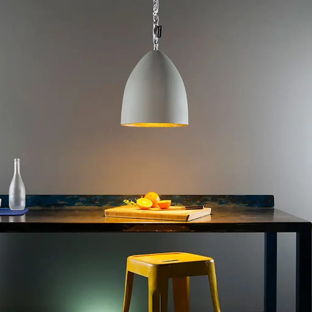 A stately modern piece, the Flower S Cemento Pendant from In-Es Art Design uses a special mix of fibers and resin to create an appealing silhouette full of tactile sensation. Designed by Italian designer Oçilunam, this alluring piece is painted with a cement effect that allows the piece to blend with a range of home styles while the interior is adorned with several different colors, each full and vibrant. A single bulb within the shade fills the space with a welcoming dose of light.