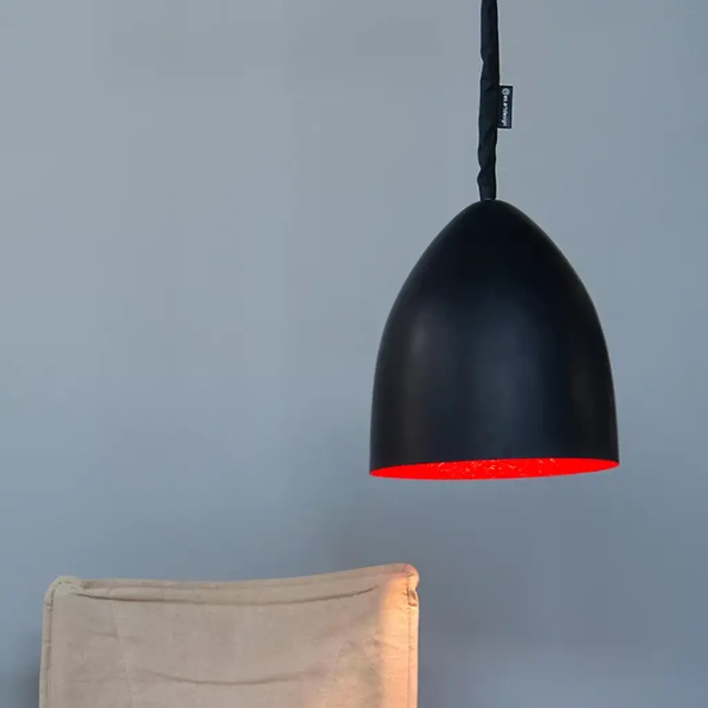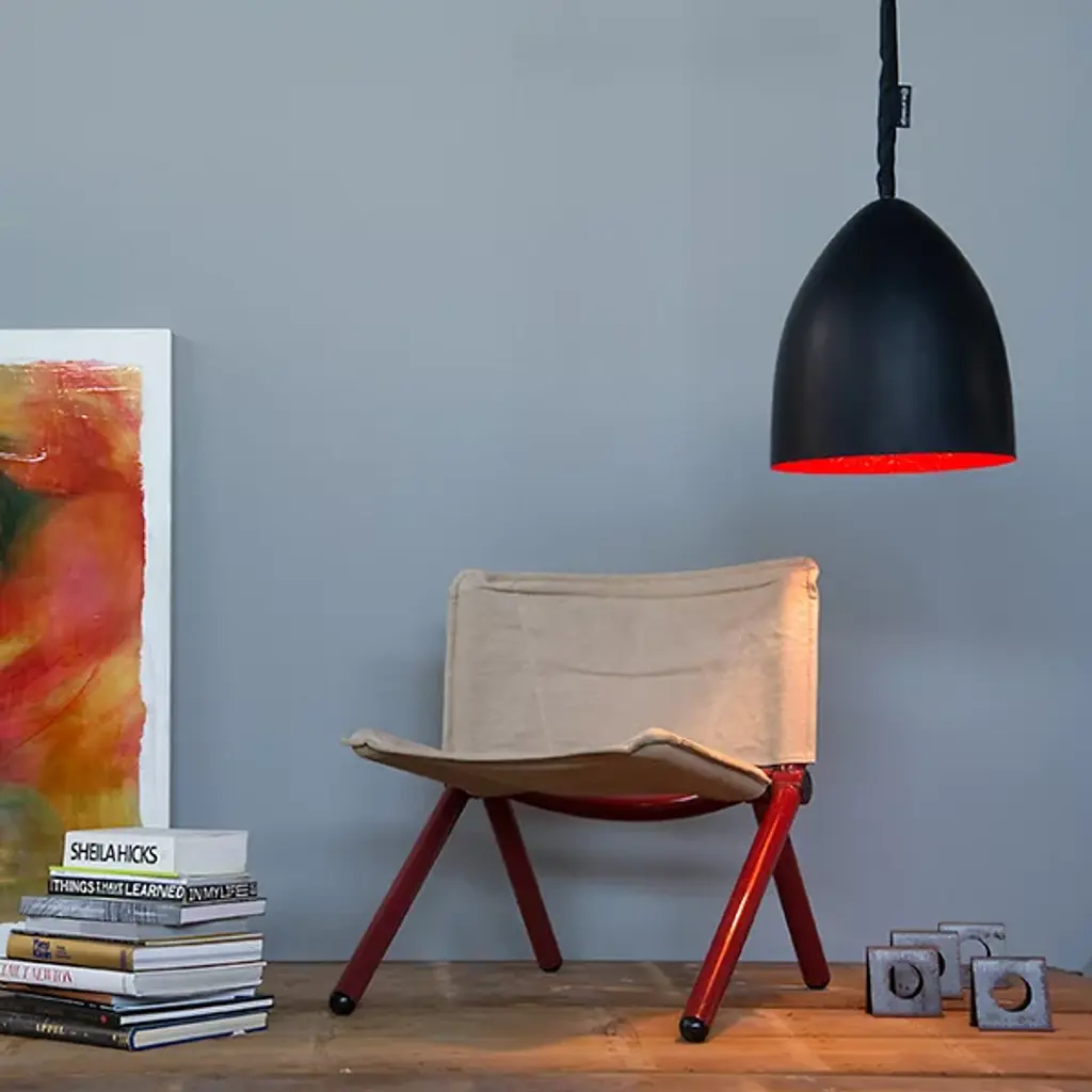 The Flower S Lavagna Pendant from In-Es Art Design creates an intimate and inviting downward glow while displaying a refined silhouette for the modern home. Modeled completely by hand, this fixture drops from a fabric-wrapped cord to a dome-shaped shade complete with a blackboard finish that allows it to be decorated with chalk drawings. A colored interior adds contrast, while its proprietary Nebulite material brings a textural element to its minimal design.