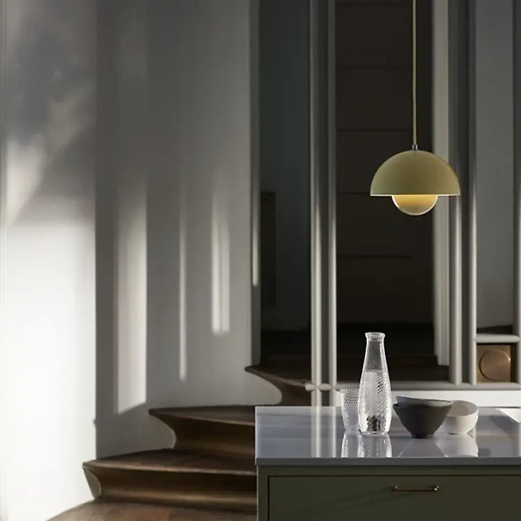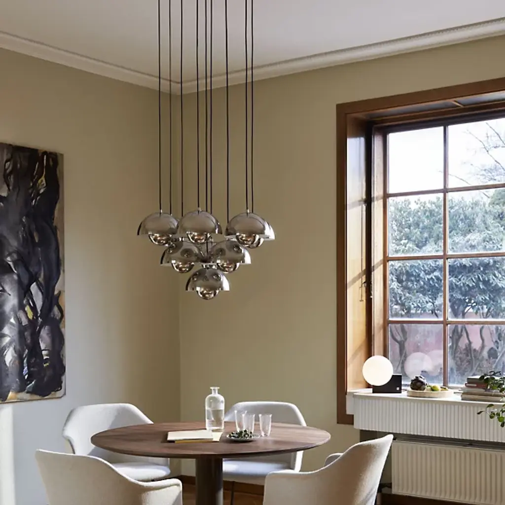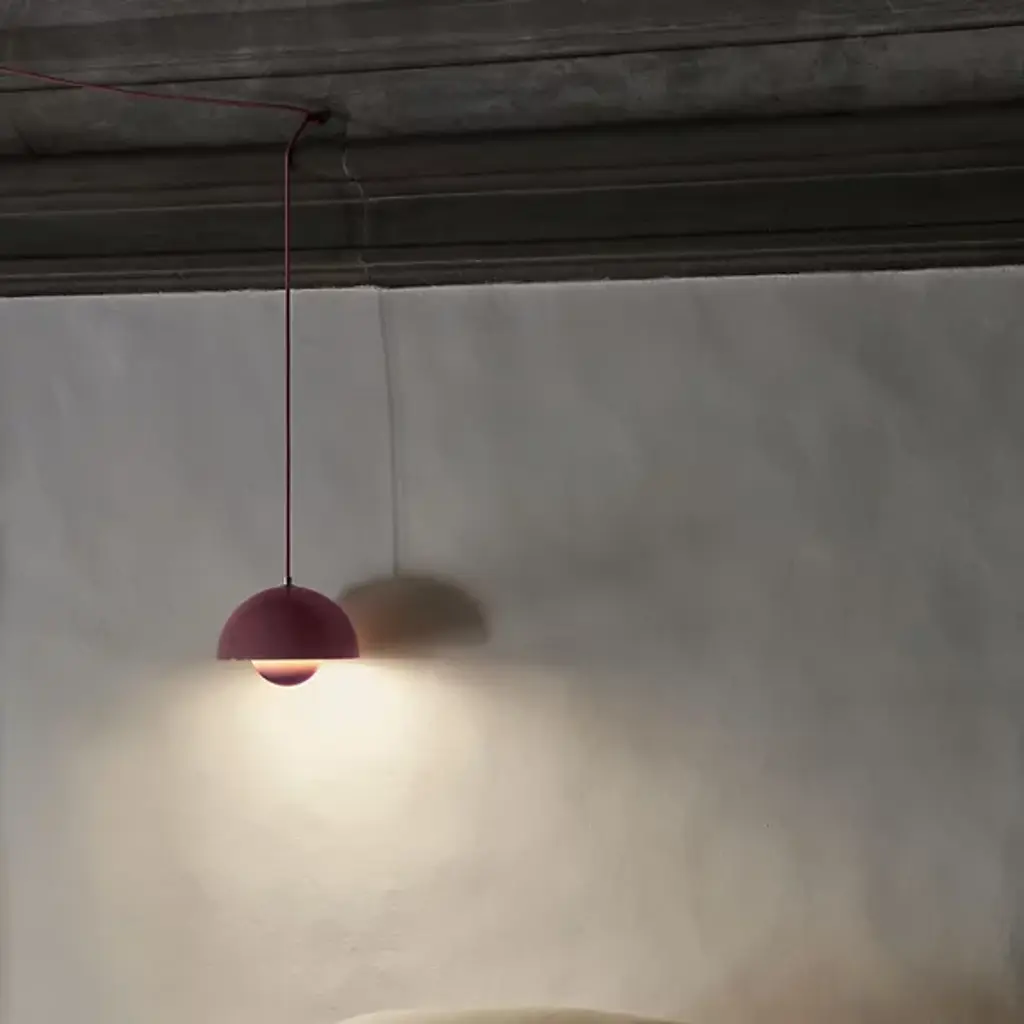 The Flowerpot VP1 Pendant from &Tradition is designed by Verner Panton, blending timeless elegance with contemporary flair. Crafted with care, this pendant features a dome-shaped shade made of high-quality metal. It’s secured by a downrod and ceiling canopy. The 2-hemisphere formation adds functionality and contemporary flair. Made in the Scandinavian artisanal tradition, Flowerpot showcases impeccable craftsmanship and a commitment to quality. For versatility, this fixture is dimmable with a separately sold ELV dimmer.